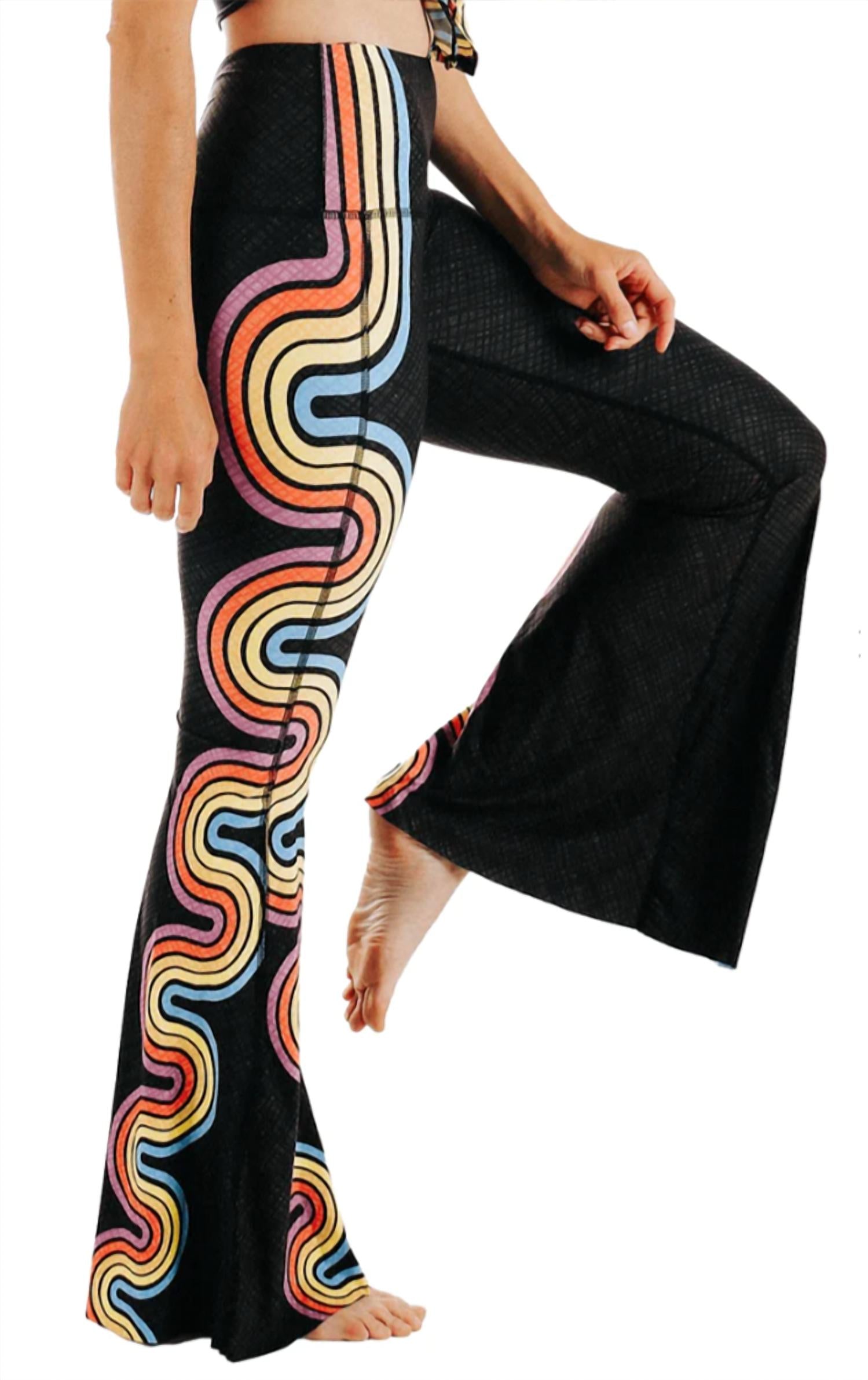 These bell bottom flare leggings are the perfect blend of flair and function, ideal for yoga, brunch, or a relaxed Sunday. Made from breathable, sweat-wicking techno-fabric, they keep you cool and comfortable during any workout. Designed with a 32" inseam and bar-tack stitch sections, you can customize the length without compromising the look or structure.