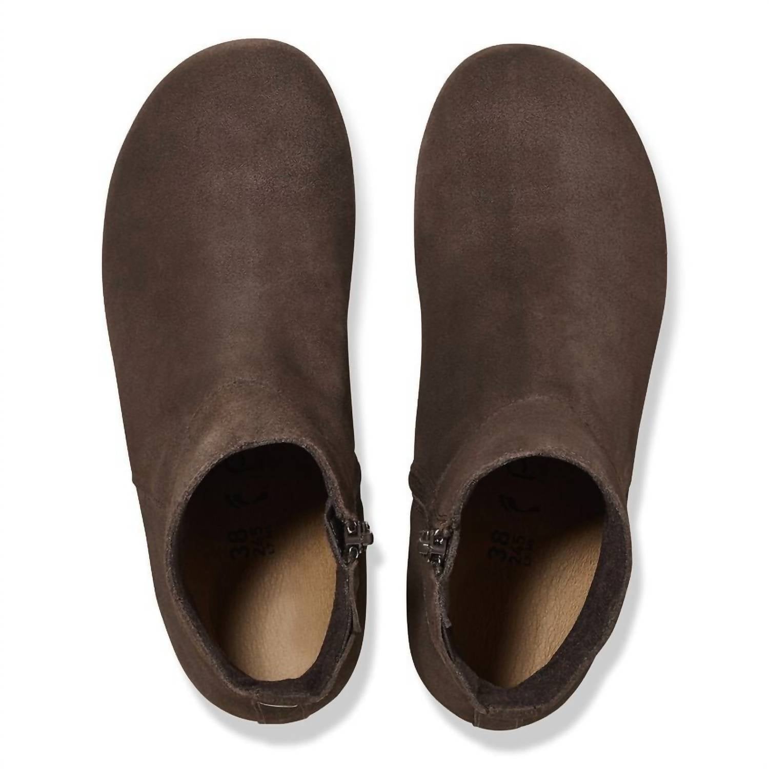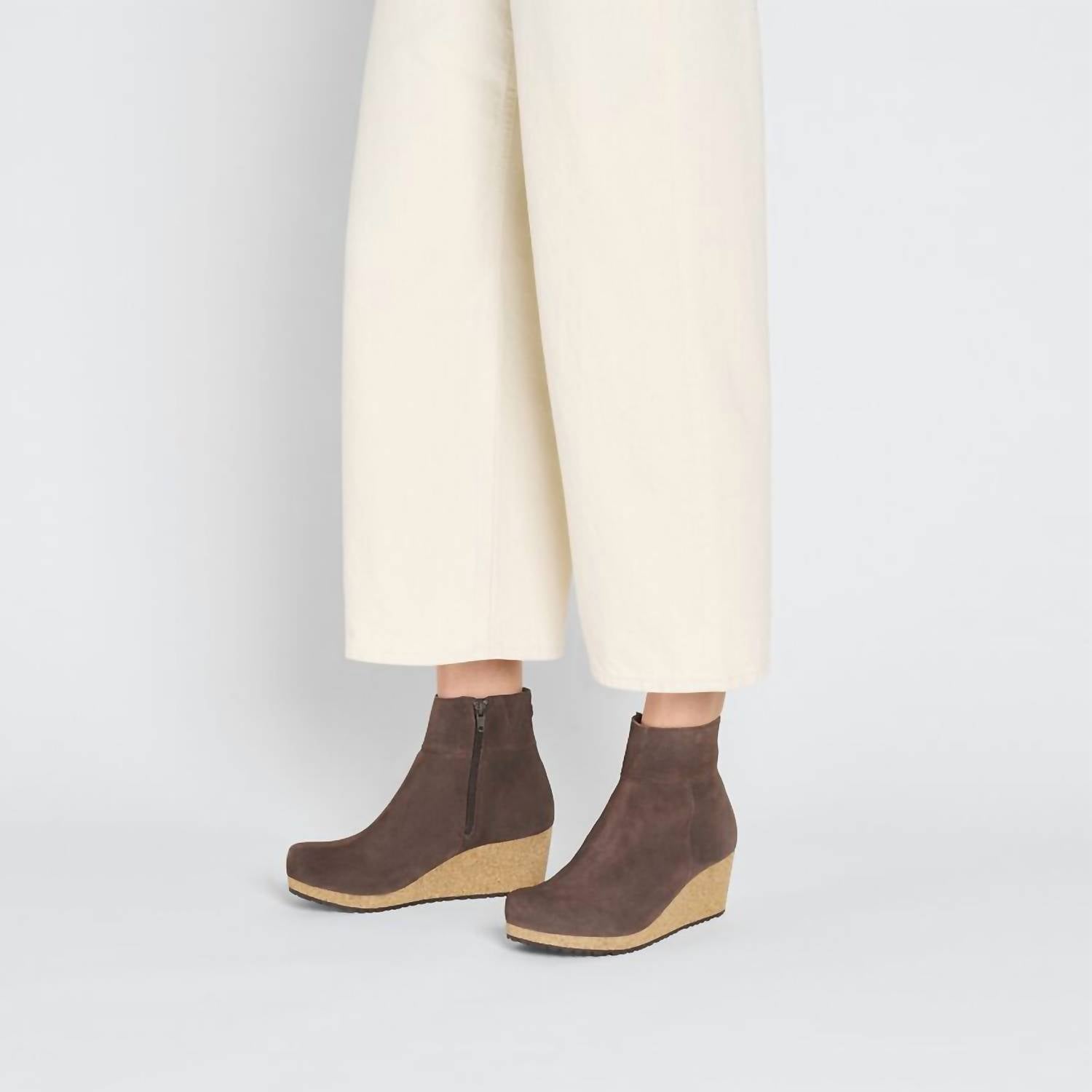 The Ebba ankle boot combines the comfort of a contoured footbed with the lift of a cork wedge heel, designed to support without adding pressure to the forefoot. Crafted in smooth suede with a soft suede footbed lining, it delivers a classic look with lasting comfort. A lightweight PU sole completes the design, making it an effortless way to elevate your style.