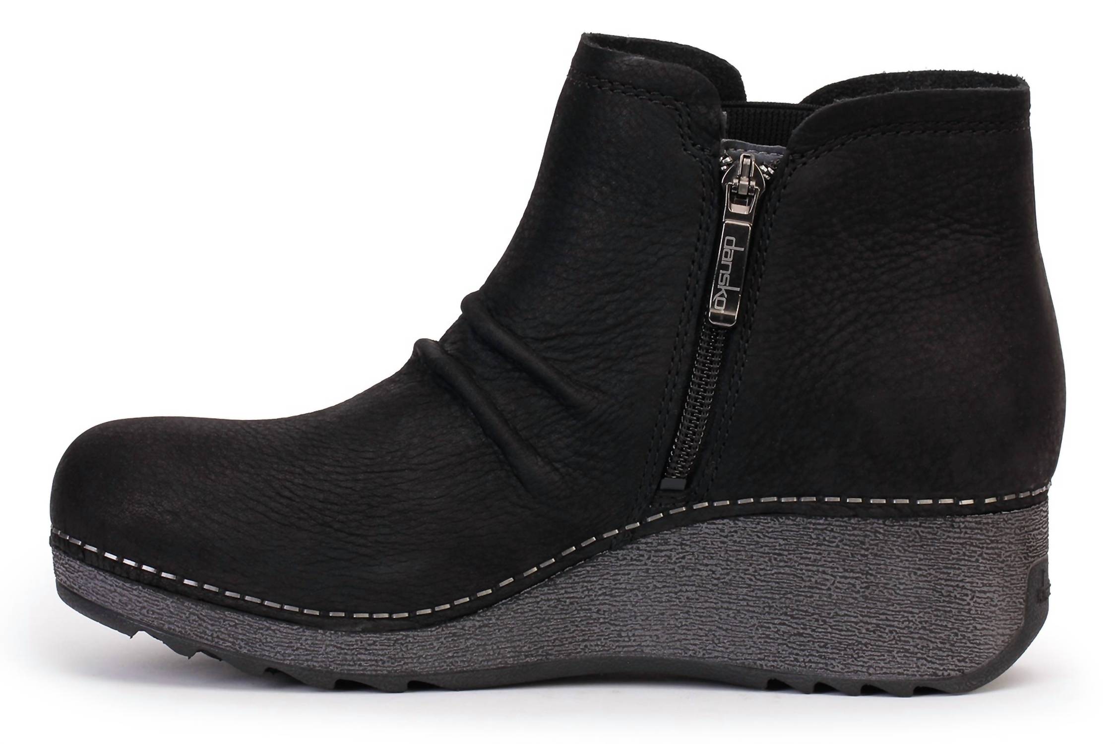 This casual yet stylish wedged boot features soft ruching for added detail and an inner side zipper for easy on and off. Made with durable milled nubuck leather and built using a patented stapled construction, it offers both comfort and long-lasting wear—making it a versatile choice for everyday outfits.