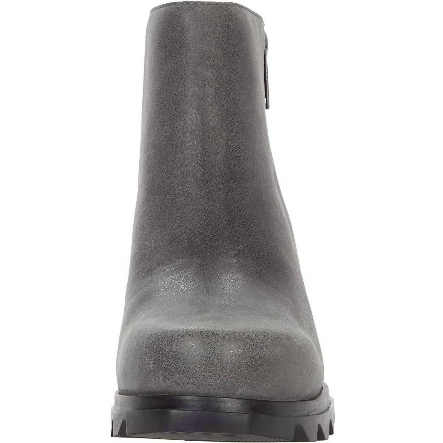 The Joan of Arctic Wedge III Zip Boot by SOREL offers a stylish combination of function and design in a minimalist approach, perfect for winter. Featuring convenient lateral side zippers and crafted from waterproof patent leather in a Quarry/Black colorway, these boots are essential for casual and light rain conditions. They boast a comfortable, removable molded PU-like EVA footbed and a molded BPU-PU wedge midsole for all-day comfort, with a heel height of 3 inches and a platform height of 3/4 inches. Ideal for hiking or everyday outings, their round toe and chunky heel add both durability and style to your wardrobe.