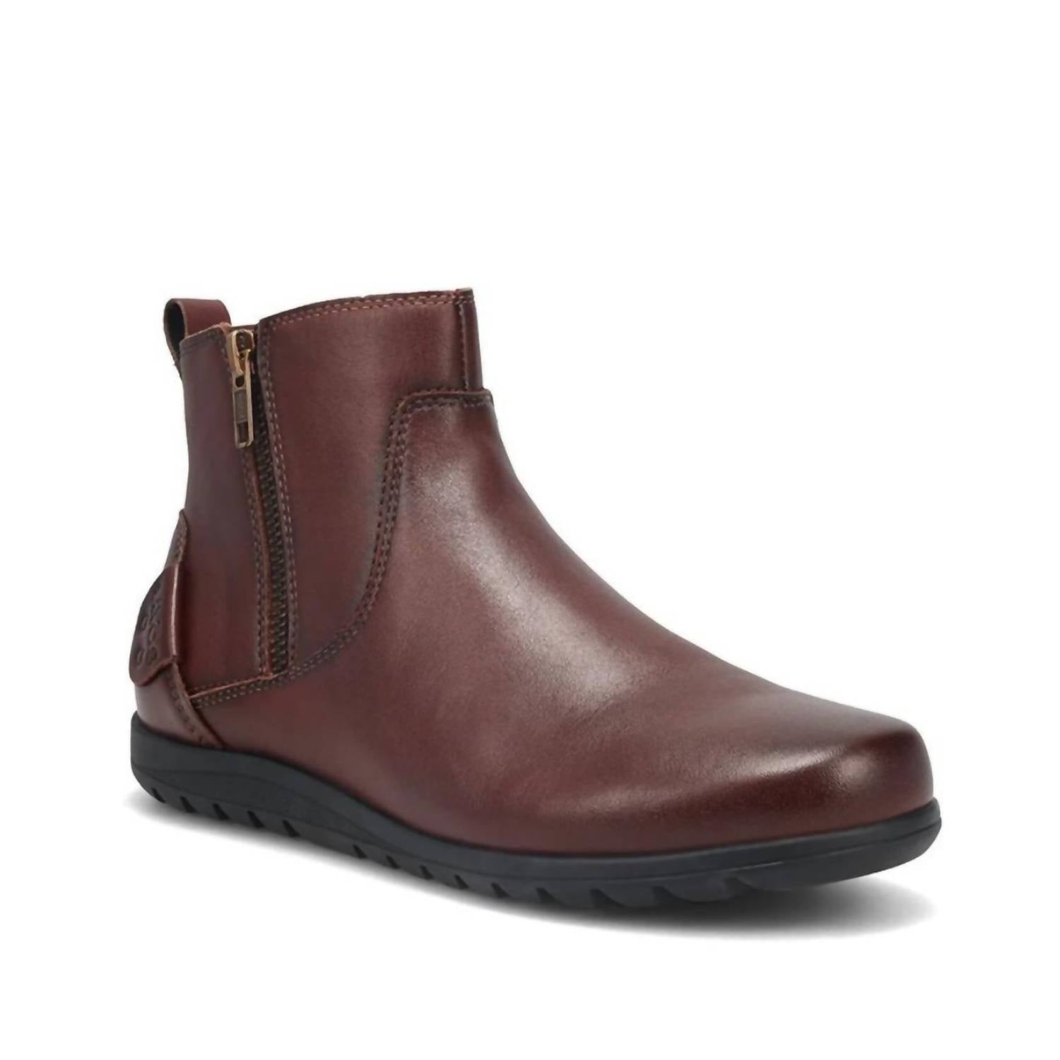 Elevate your fall wardrobe with the Taos Women's Select Fashion Boots, a vintage-inspired bootie in a striking whiskey hue. Crafted from full-grain leather, these ankle boots feature double YKK zippers for effortless wear, a round toe, and a chunky heel with a height of 1.75 inches. Engineered for comfort with lightweight construction, forefoot cushioning, and a PU footbed offering arch and metatarsal support, these boots ensure maximum comfort while on vacation or during daily wear. Complete with an antimicrobial shield and slip-resistant rubber outsole, they are designed to be both stylish and practical for any occasion.