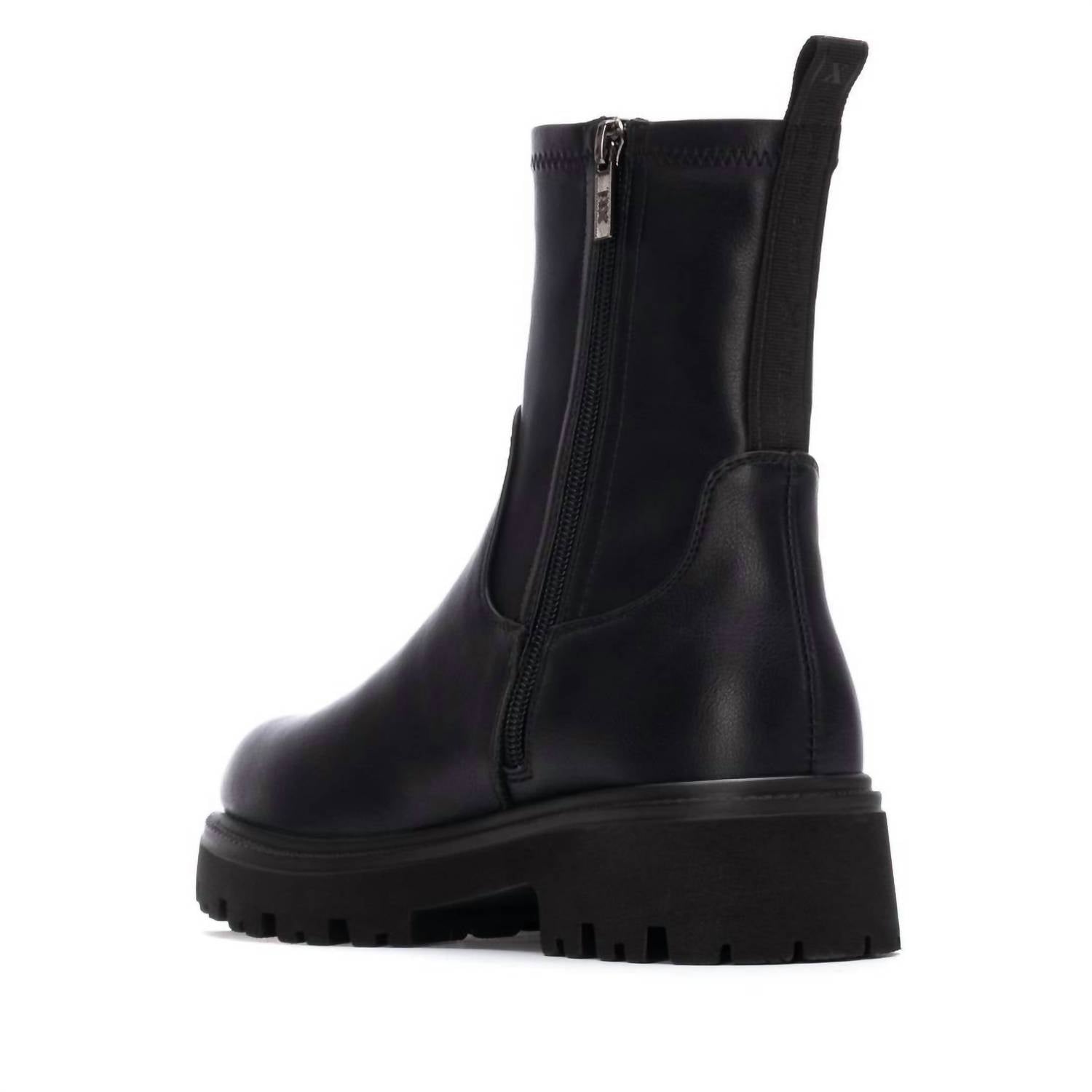 Say hello to the perfect, most versatile boot. The ankle height makes this style easily transition from day to night. Wear them with your favorite skinny jeans and tee for a more laid back look, or pair them with your favorite mini dress and jacket for a night out on the town. Introducing the Women's Round Toe 144657 Booties by Xti, perfect for both casual outings and special occasions. Crafted from premium leather, these black ankle booties showcase a round toe and flat heel, ensuring both style and comfort. Designed for the modern woman who appreciates quiet luxury, these booties are ideal for spring engagements and Thanksgiving festivities. Enjoy the medium shoe width that provides a comfortable fit for everyday wear.
