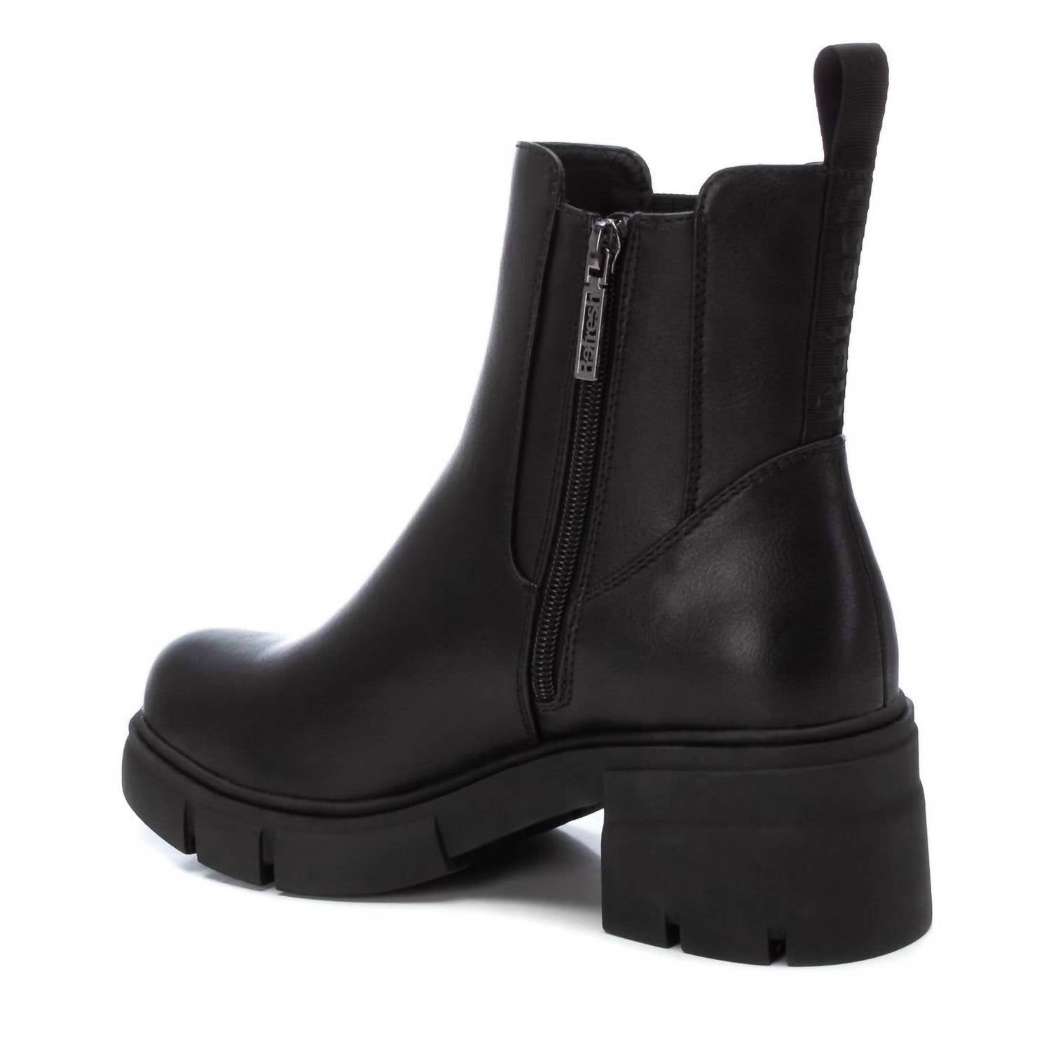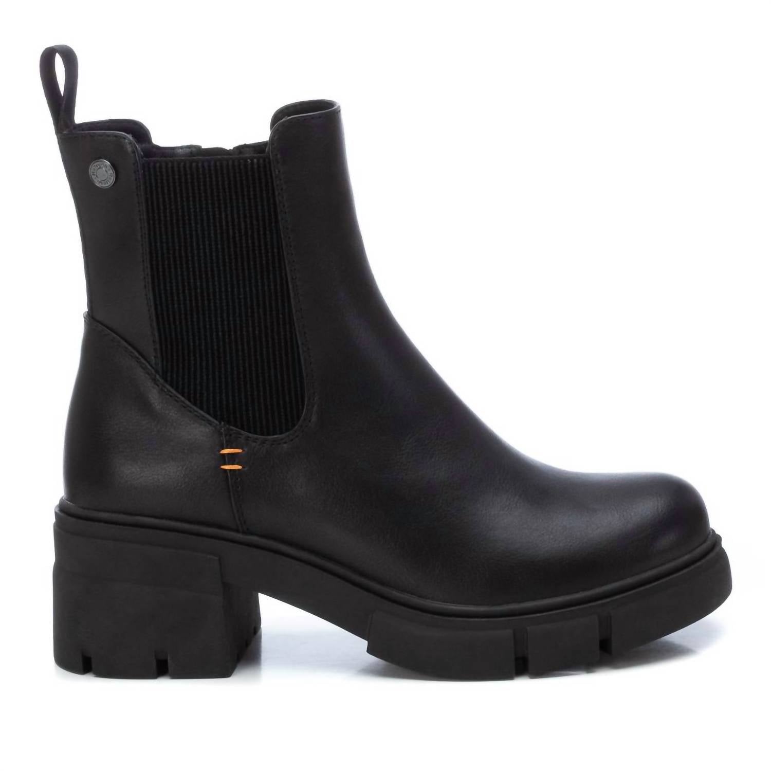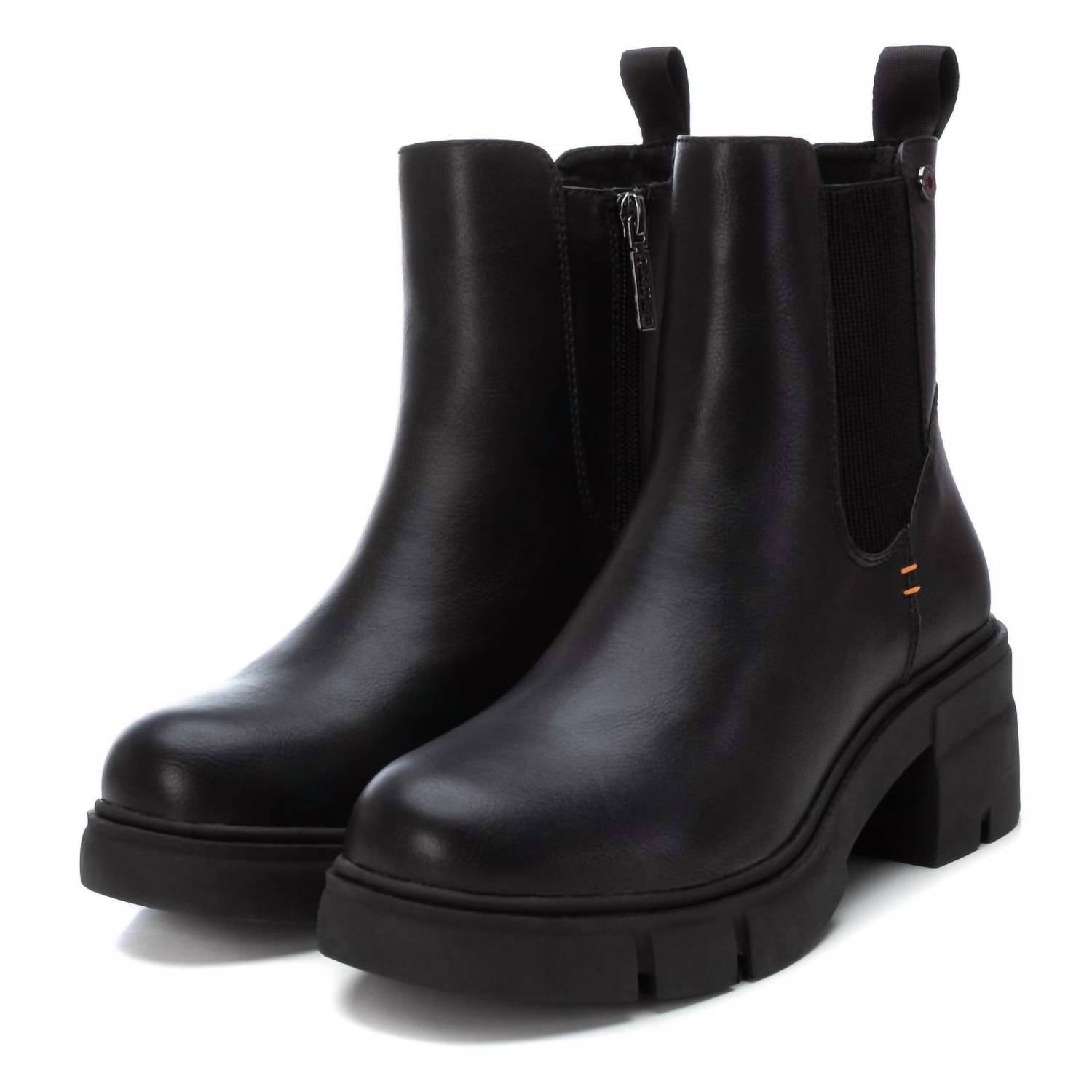 The Women’s Chelsea Booties by Xti feature a 2.36-inch block heel, side zipper, and elastic side band for a secure fit. Crafted from faux leather with a padded insole, breathable lining, and non-slip lug rubber sole, they offer both comfort and style for any occasion.