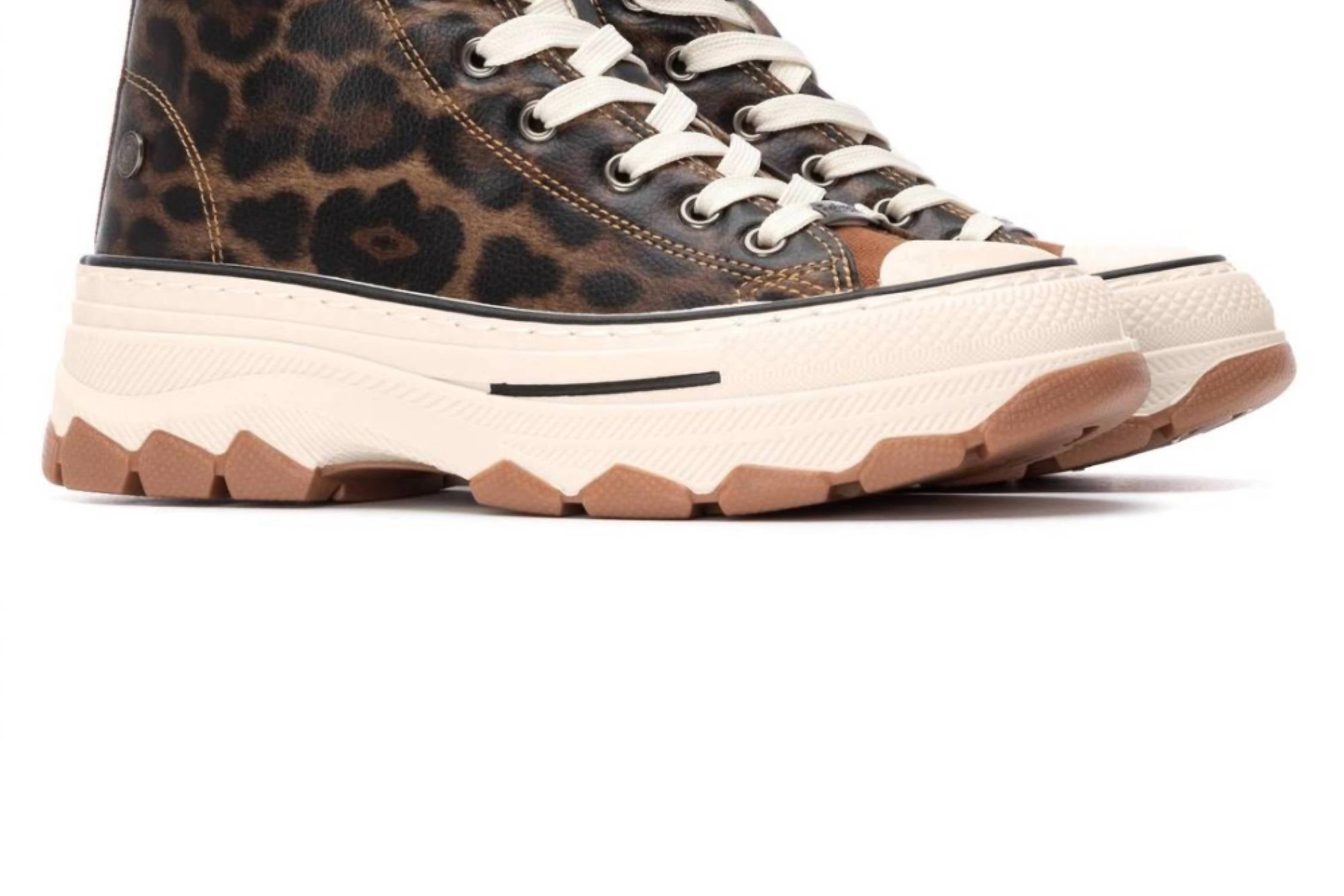Step boldly with the Women's Refresh Lace Up Ankle Booties by Xti, crafted for the adventurous spirit. With a stylish leopard print faux leather exterior, these ankle boots feature a reliable interior zip fastening along with adjustable contrasting laces for a personalized fit. Built with a thick rubber sole and a removable insole, they provide comfort and durability with a nod to 90s fashion trends. Proudly PETA-certified vegan, these boots ensure you stay fashionable and ethical, ideal for fall jaunts and New Year’s Eve escapes. Heel Height: Low (1 1/4"-2").