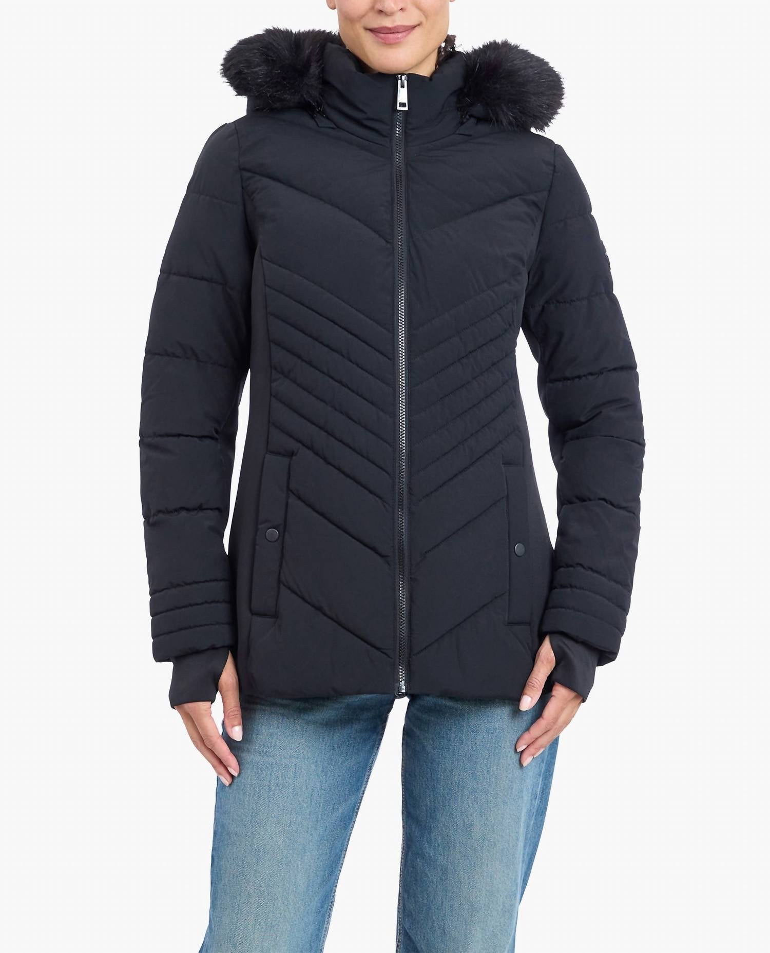 London Fog - Zip-front Puffer Jacket With Removable Faux Fur Trimmed Hood