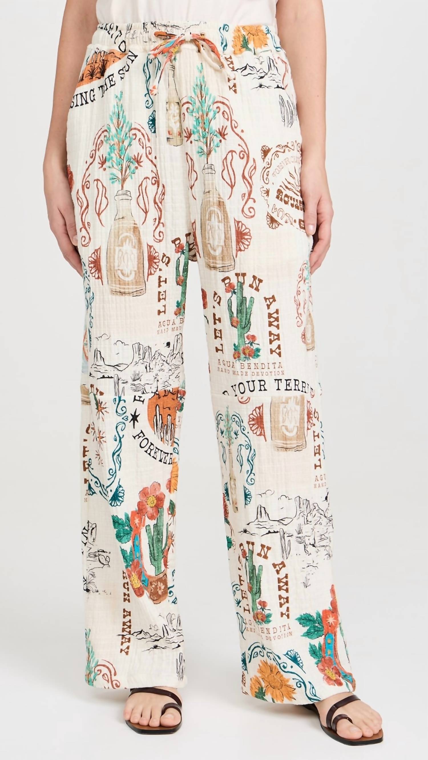 Step out in style with the Frank Nopal Pants by AGUA BENDITA, a travel-ready essential for the fashion-forward woman. These multicolor pants feature a straight leg design with a convenient pull-on closure. Crafted from a comfortable cotton blend with a regular fit, these patterned pants offer a 15" rise and a 28.75" inseam. Care: Machine wash. Perfect for fall and the preppy Easter season.