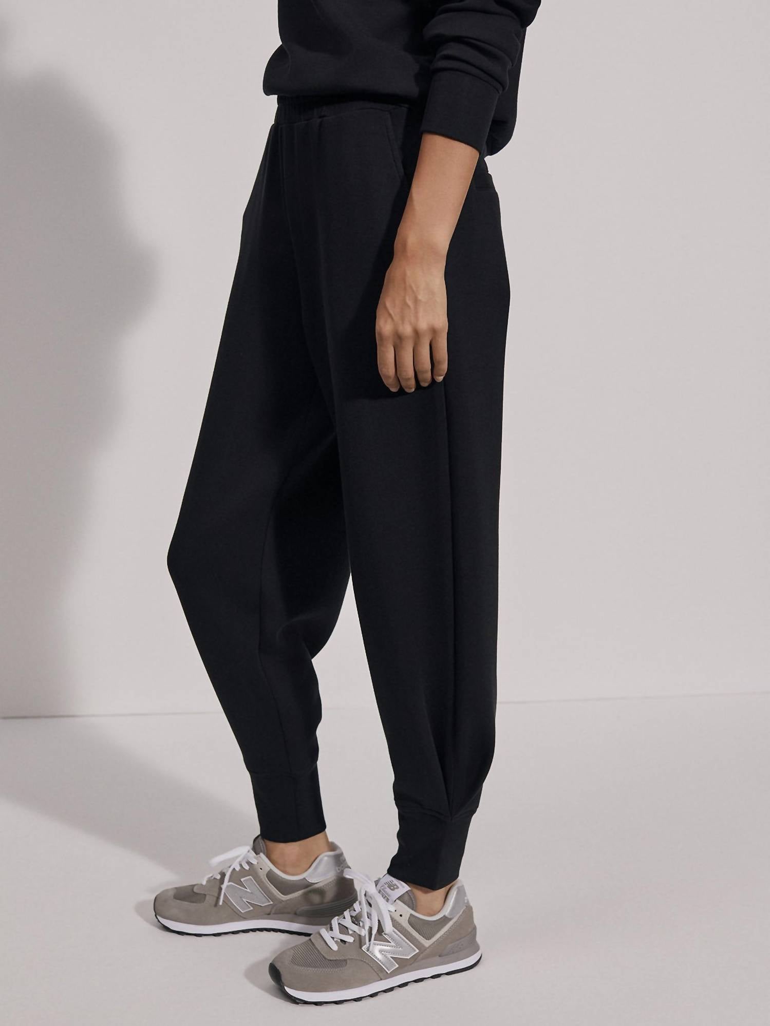 Experience the ultimate comfort with the Relaxed Pant by VARLEY, designed for women who appreciate effortless style. These black jogger sweatpants feature a comfortable mid-rise waist, tapered legs, and a solid pattern perfect for athleisure or holiday parties. Crafted from a 72% Viscose, 23% Polyester, 5% Elastane, they boast a pull-on closure for easy wear and flexibility. Inseam: 25 inches. Care: Machine wash, lay flat to dry.