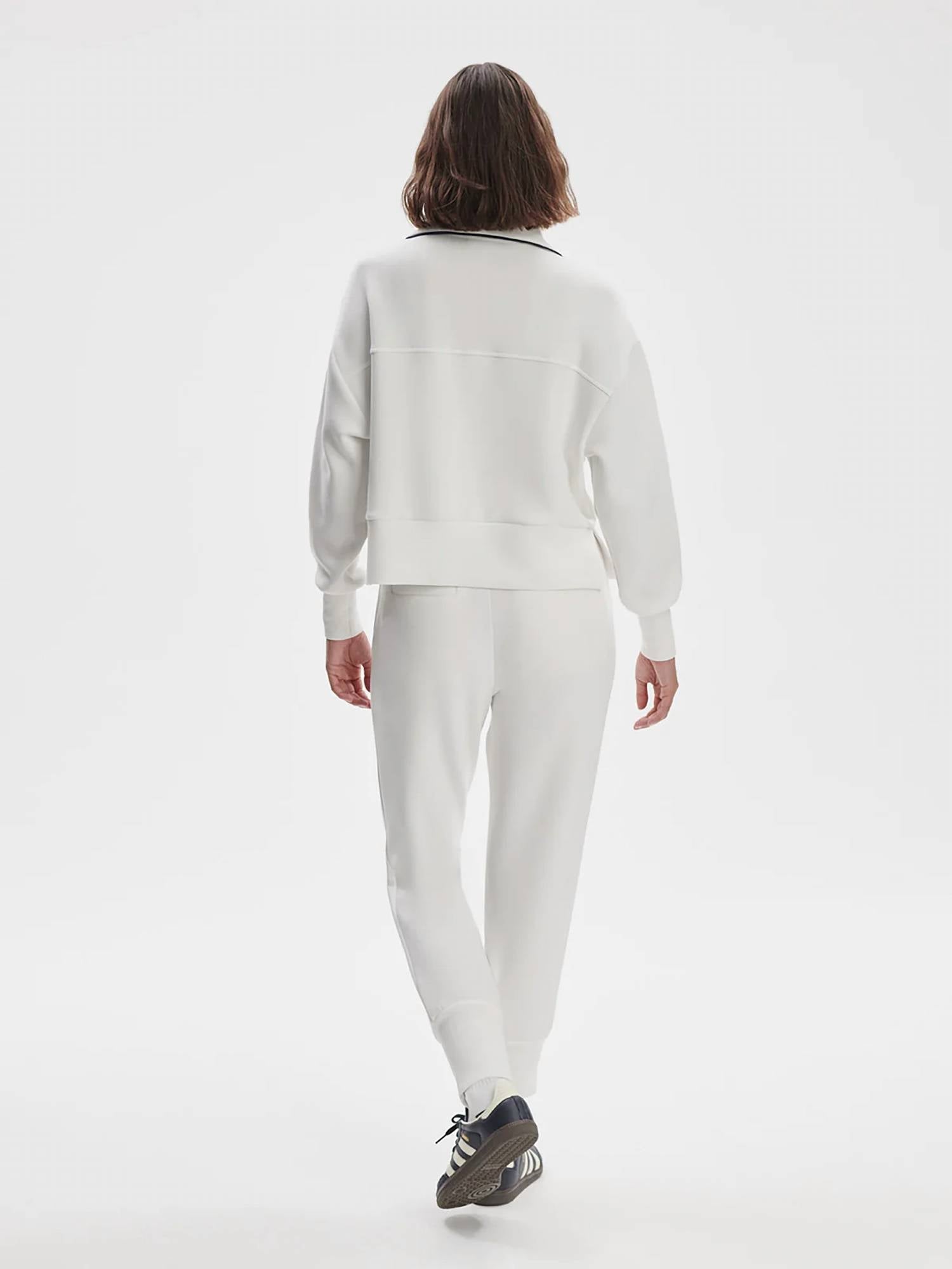 Discover the Slim Cuff Pant 25" by VARLEY, a perfect fusion of comfort and style designed for women. Crafted in a 72% Viscose, 23% Polyester, and 5% Elastane blend, these pants boast a slim fit with a cuffed hem, offering a tailored profile. They feature an easy pull-on closure and a practical elasticated waistband with an internal drawcord for a personalized fit, paired with a tapered leg design. Ideal for the athleisure trend, these solid white pants are easy to care for: simply machine wash and lay flat to dry.