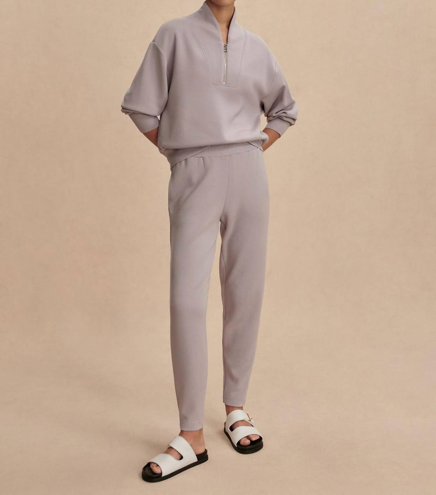 Introducing the Slim Pants by VARLEY in the elegant Raindrops color, a chic essential for your activewear collection. These track pants feature a slim fit with a tapered leg style and convenient pockets, perfect for a flattering and modern look. Crafted from a viscose blend, they feature a comfortable pull-on closure and a mid-rise waist for ease and versatility. Enhance your spring holiday wardrobe by machine washing and laying flat to dry, ensuring enduring quality and style for every occasion.