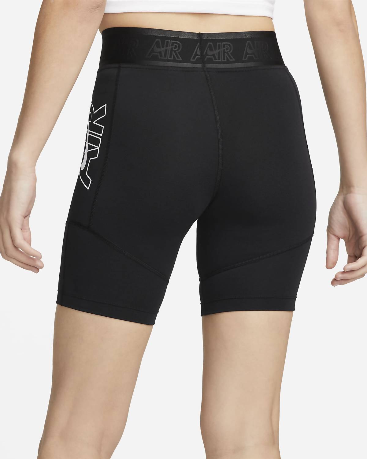 Elevate your workout wardrobe with the Nike Women's Air Bike and Fitness Shorts in Black, featuring a sleek graphic pattern and a supportive pull-on closure. Crafted from a blend of 61% cotton, 33% polyester, and 6% spandex, these mid-rise shorts offer a tight fit for a body-hugging feel that moves with you, ideal for spring athleisure trends. The alternating matte and shine Nike Air jacquard knit logo on the elastic waistband adds a stylish touch, while the smooth jersey fabric is perfect for a comfortable, everyday wear. Care instructions include machine washing.