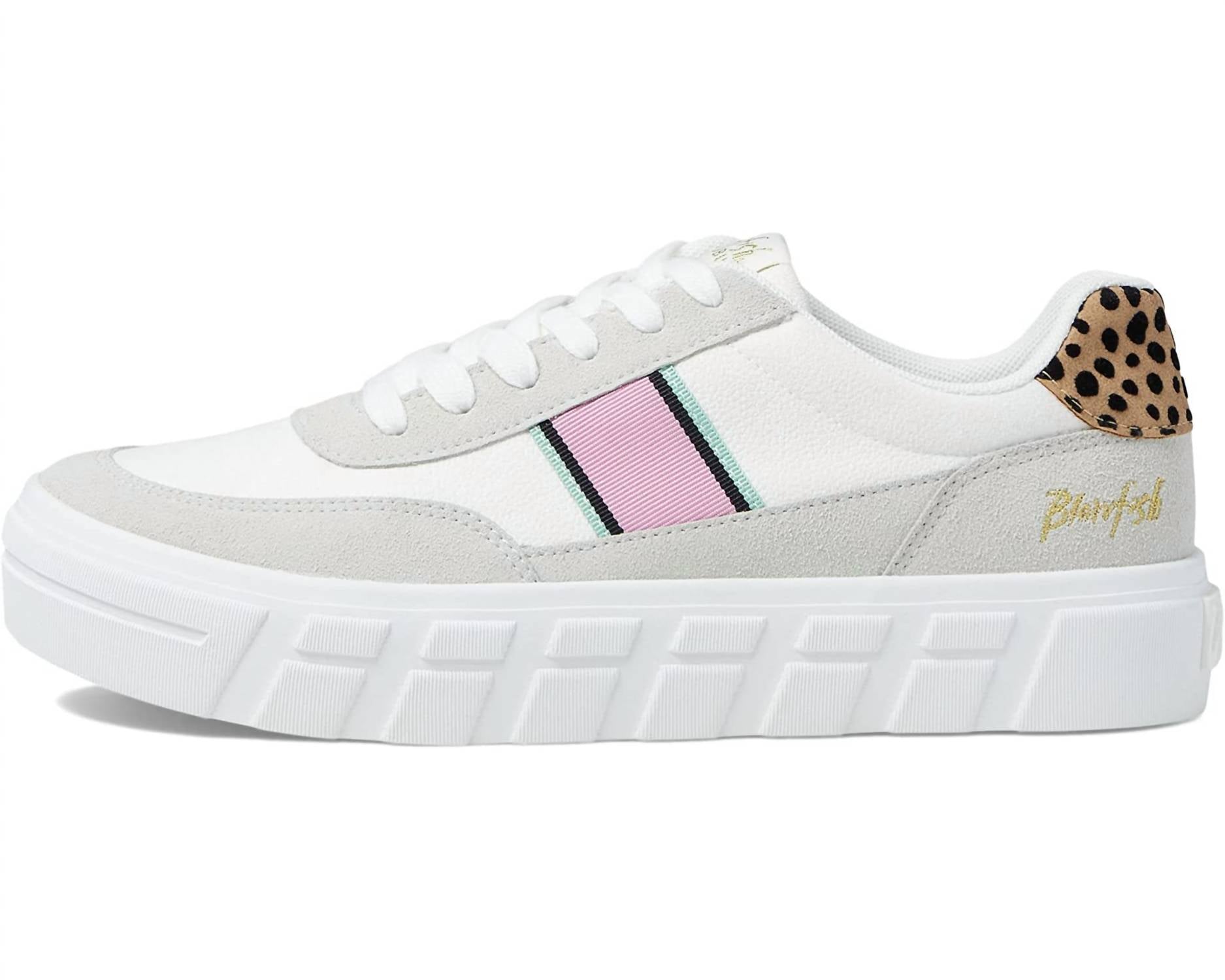 Elevate your casual style with the Women's Speedy Sneaker by BLOWFISH, beautifully blending comfort and flair. Crafted with a synthetic upper, these sneakers boast a textile lining and insole for optimum comfort. The lace-up closure ensures a secure fit, while the round toe design adds a classic touch. Available in a variety of colors including White Fields and Sand Pixie Leopard Grassland, each pair is finished with brand detailing on the tongue and footbed.