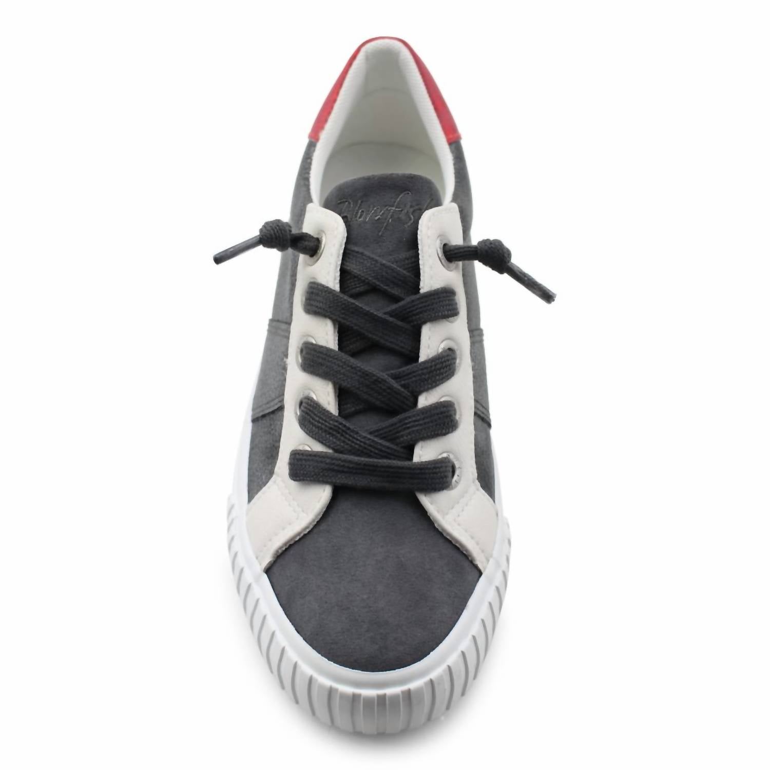 Step into comfort and style with the Women's Wave-B Sneaker by BLOWFISH. This sneaker boasts functional laces and branded eyelets for a secure fit, while the cushioned footbed ensures all-day comfort. The insole is made with BLOOM Foam, an eco-conscious material containing algae. Color: Gunmetal Tumbleweed/Dark Grey Micro Fiber/Red Reflective. Toe Shape: Round. Shoe Width: Medium.