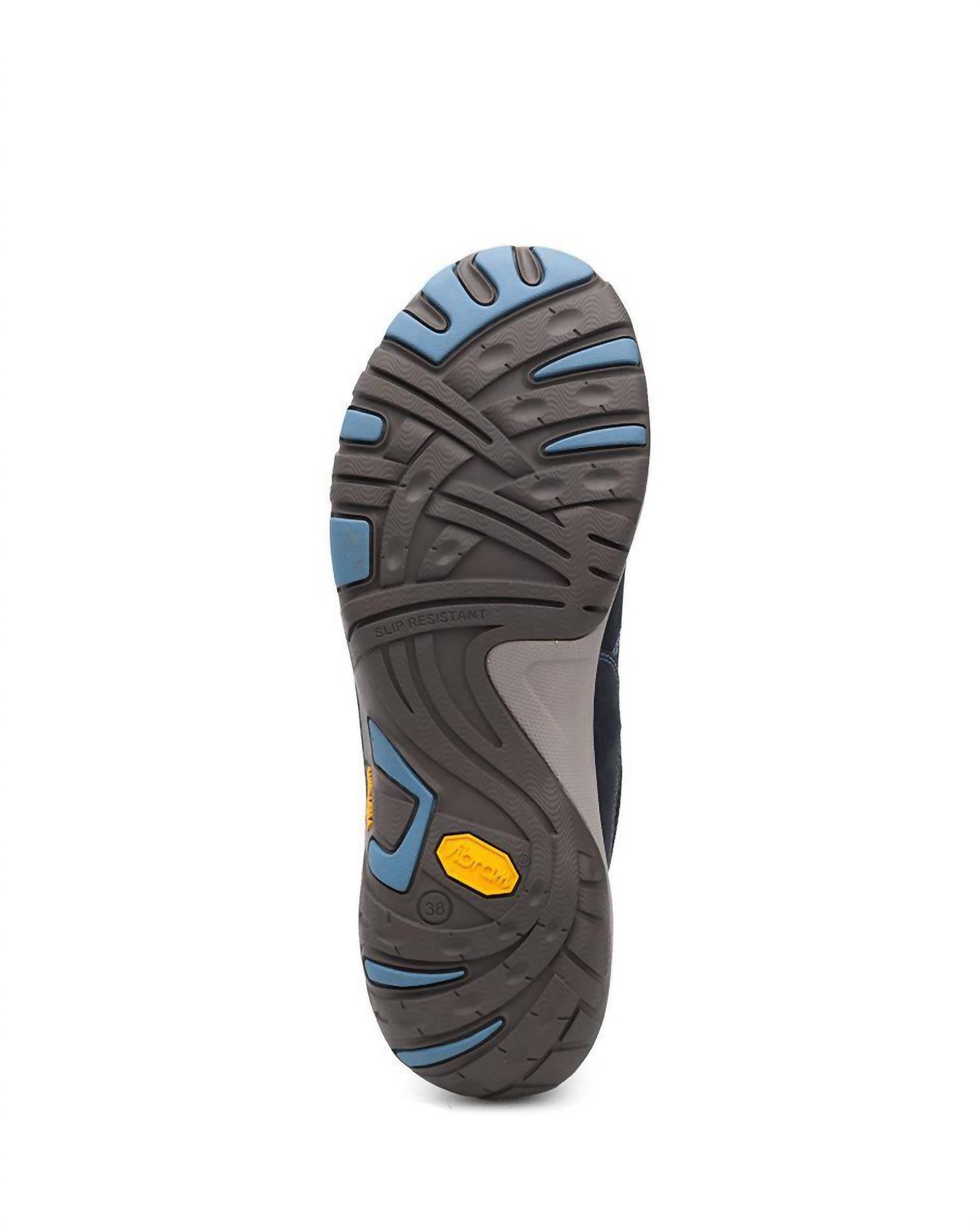 When fashion and function come together seamlessly. Stay stylish and protected with the Women's Paisley Waterproof Sneaker by Dansko in Navy, perfect for fitness and athleisure activities. These sneakers feature durable waterproof suede uppers treated with 3M Scotchgard™ for stain resistance, and a removable triple-density footbed offering added arch support and shock absorption ensuring all-day comfort. Designed with a round toe and flat heel, the sneakers provide stability thanks to a built-in shank, while the slip-resistant Vibram® rubber outsole offers superior traction on both snow and dry surfaces. Ideal for spring, these sneakers blend fashion and function seamlessly.