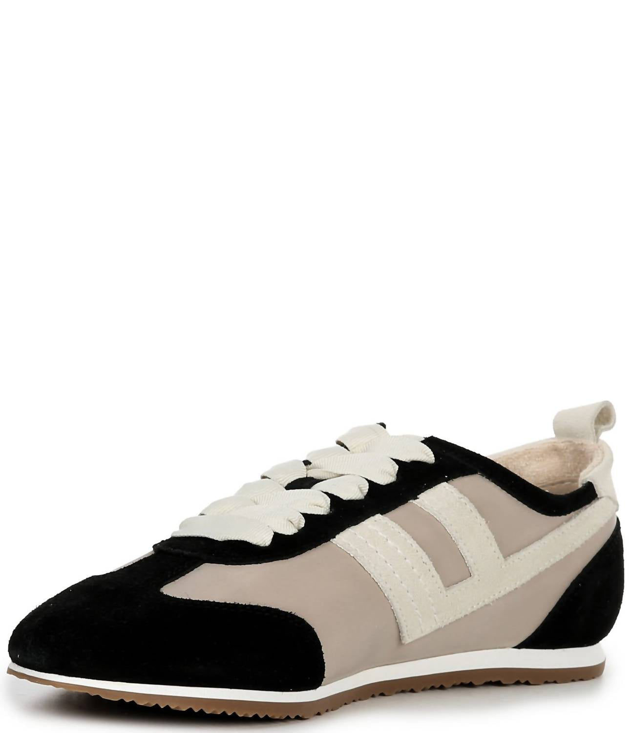 Step into style with the Women's Aces Tennis Sneakers by Free People, boasting a chic black/oyster colorway. These sneakers feature a suede upper with a distinctive embossed tennis logo on the tongue and a functional back pull tab. Designed with ribbon laces and a secure lace-up closure, they offer comfortable wear through a leather lining and padded insole, finished with a durable rubber outsole. Perfect for summer athleisure and effortlessly transitioning to a dinner party occasion, all with a trendy round toe and flat heel.