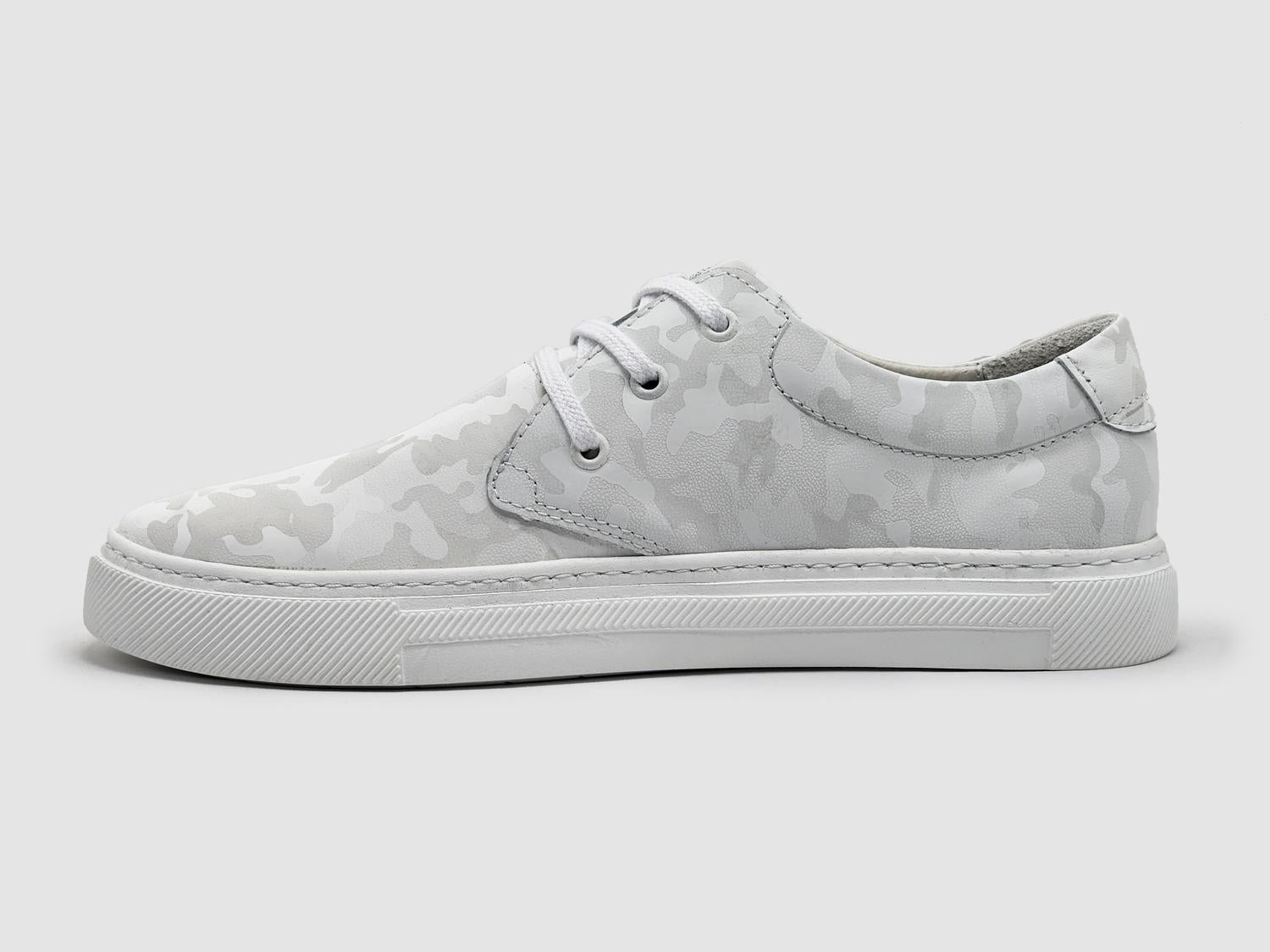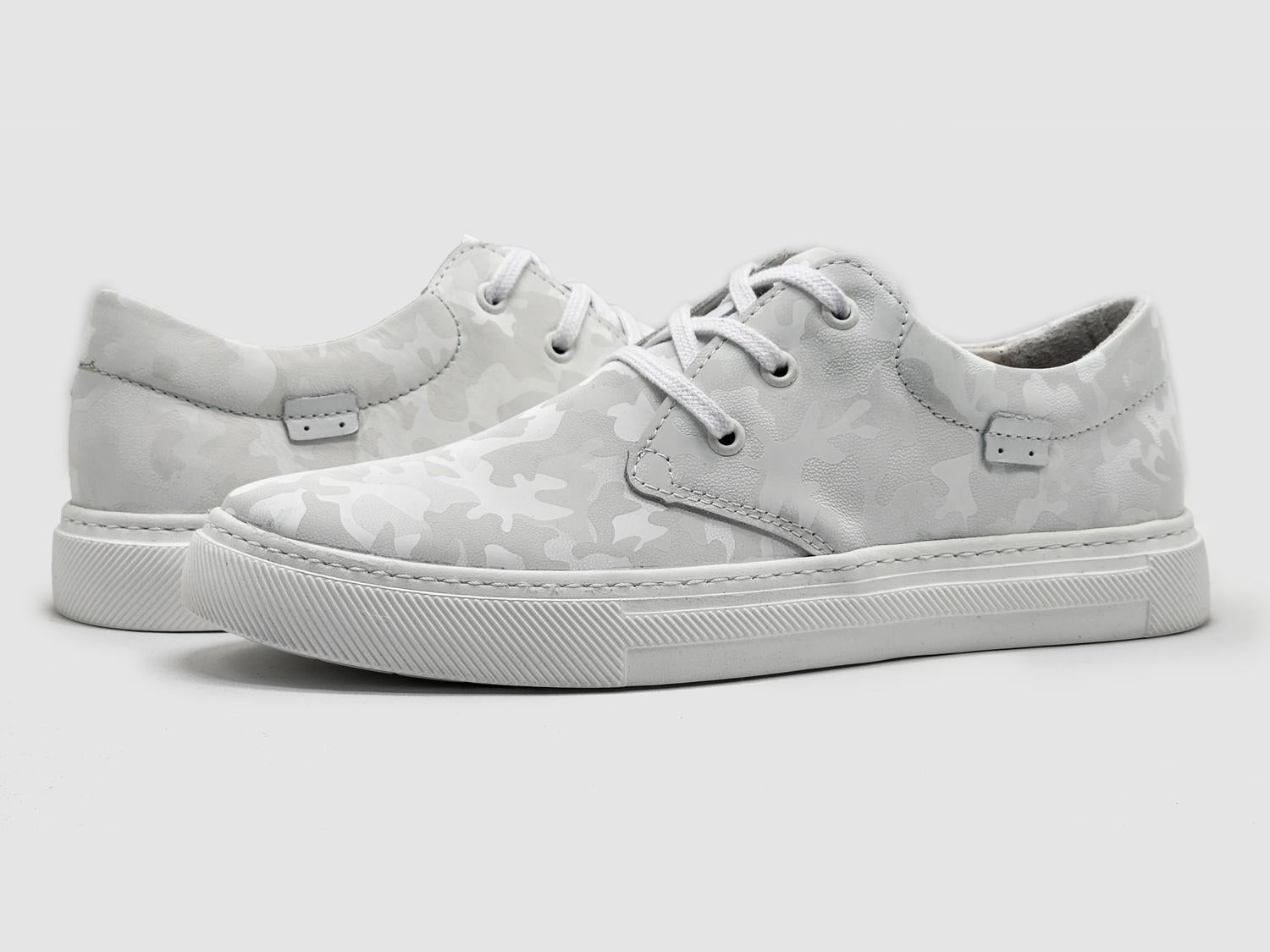High-quality leather construction for durability. Unique camo design for a bold, stylish look. White color for a clean and versatile appearance. Designed for all-day comfort with a lightweight fit. Ideal for casual outings or everyday wear. True to size for a perfect fit. Handcrafted in Poland for superior craftsmanship.