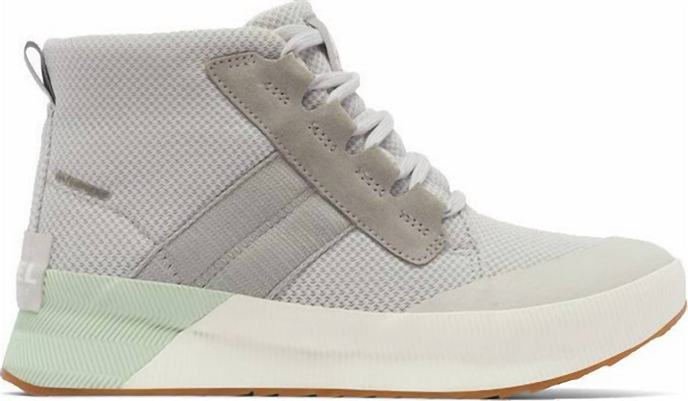 Step out in style with the Women's Out N About Mid Boots by SOREL, perfect for your fall adventures. Featuring a sleek round toe and flat heel under 1", these boots offer comfort and a chic streetwear vibe. Designed in a Moonstone hue, they effortlessly complement your vacation wardrobe. Ideal for those who value both fashion and function.