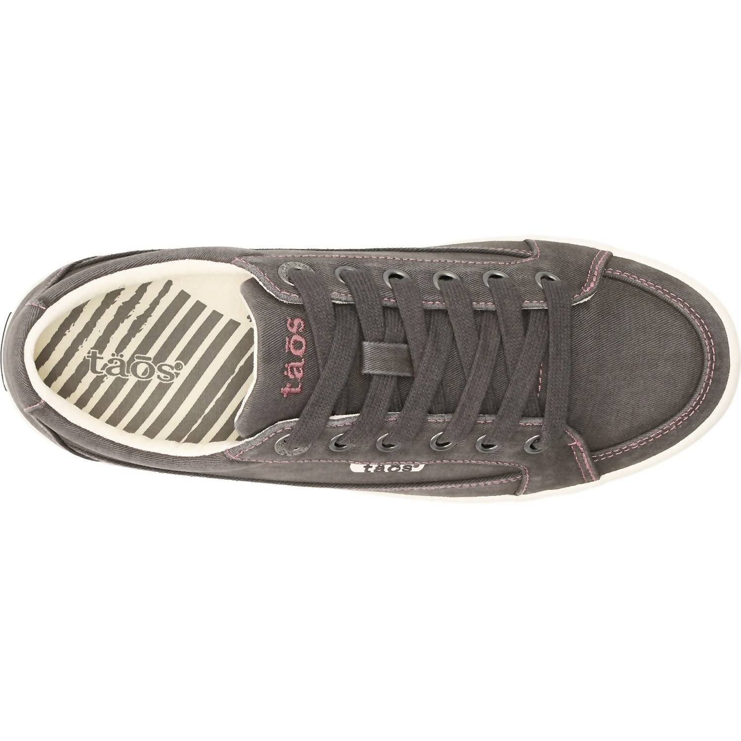 Step into comfort and style with the Women's Moc Star 2 Canvas Sneakers by Taos in Graphite Vintage Canvas, offering 90s flair. These sneakers are thoughtfully designed with canvas material and detailed stitching, providing arch and metatarsal support alongside forefoot cushioning for unmatched comfort. The antimicrobial shield-treated canvas footbed ensures freshness, while the flexible, durable rubber outsole delivers traction. Perfect for summer vacations, this wide-fitting shoe features a round toe and a flat 0.75” heel, making them an ideal choice for your next adventure or New Year's Eve outing.