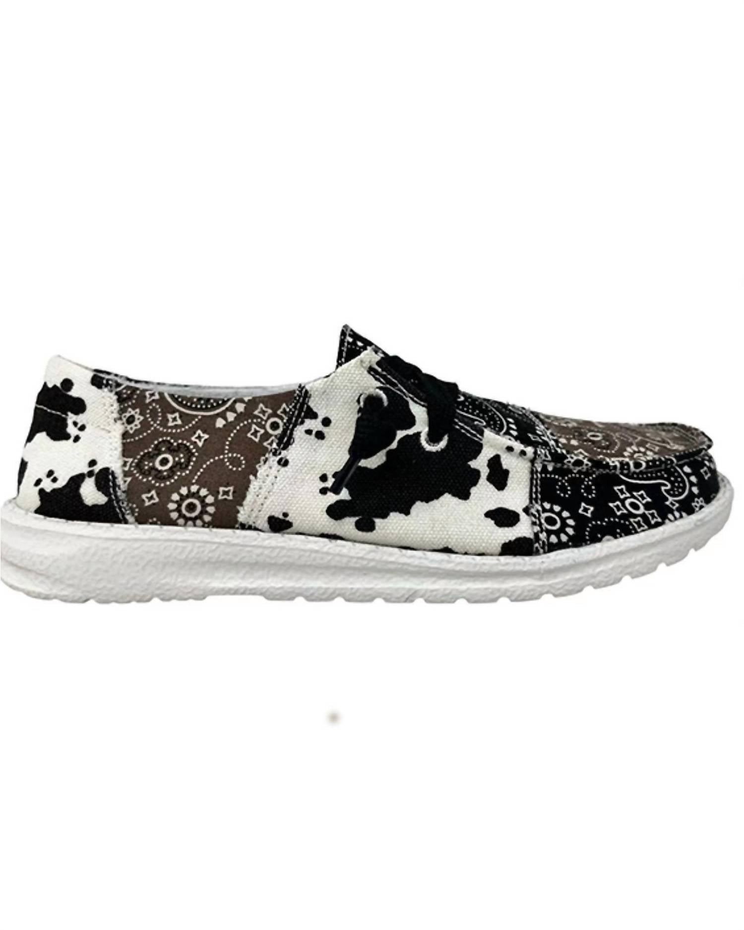 Cute, functional, and comfortable. These sneakers check all the boxes.These will become your new all-season shoe! These comfy, canvas slip on sneakers will be your new besties! You will find these to be one of those things where only having one pair is not enough! Can anyone really have too many pairs of sneakers? I think not. Padded insole. Stay with your true size. Rubber outsole. Black Cow print. Cushioned insole for added comfort. Flexible sole for comfort