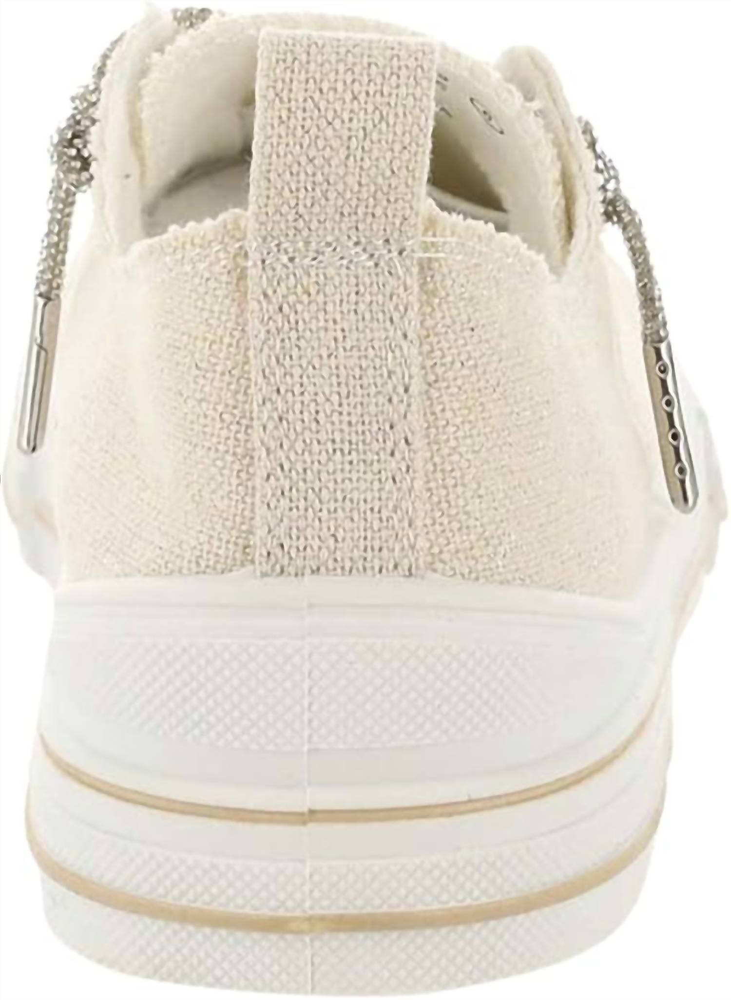 Step up your style game with the Women's Aman Sparkle Sneaker by Very G in a chic Natural color. Crafted in canvas material and originating from CN, these sneakers are wide-foot friendly and feature sparkling laces for a fun twist. Designed with a round toe shape and flat heel style, they promise comfort with a cushioning insole, making them ideal for extended wear. These true-to-size sneakers ensure your feet feel as good as they look.