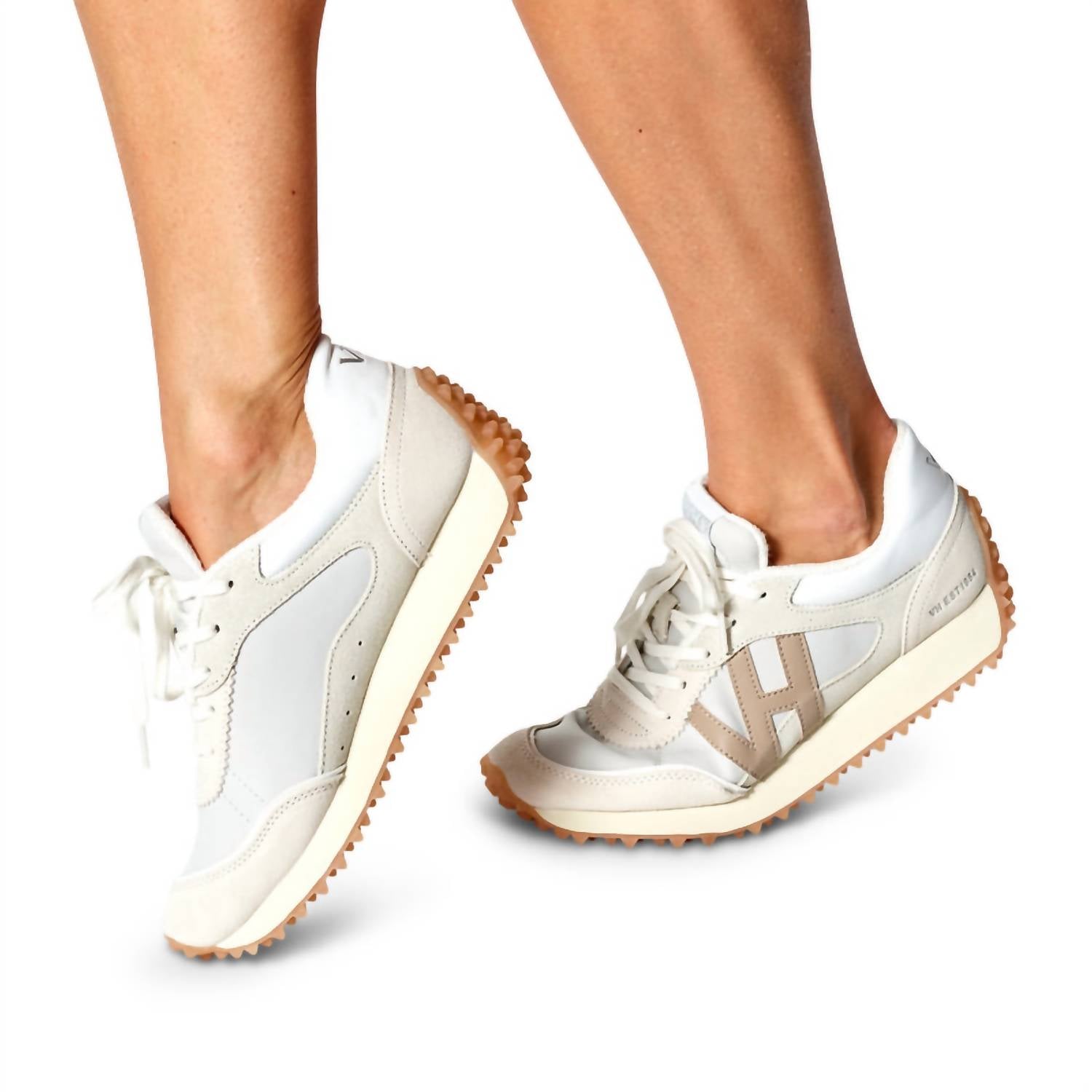 Step up your footwear game with the Women's Cosmic 15 Sneakers by Vintage Havana, offering a stunning blend of style and comfort. These sneakers showcase a chic round toe and a unique pebble texture in a classic white and taupe color palette, making them a stylish choice for any ensemble. With a flat heel design and a heel height of 1.25 inches, these kicks ensure both comfort and style that is perfect for everyday wear. A must-have addition for any fashion-forward wardrobe.