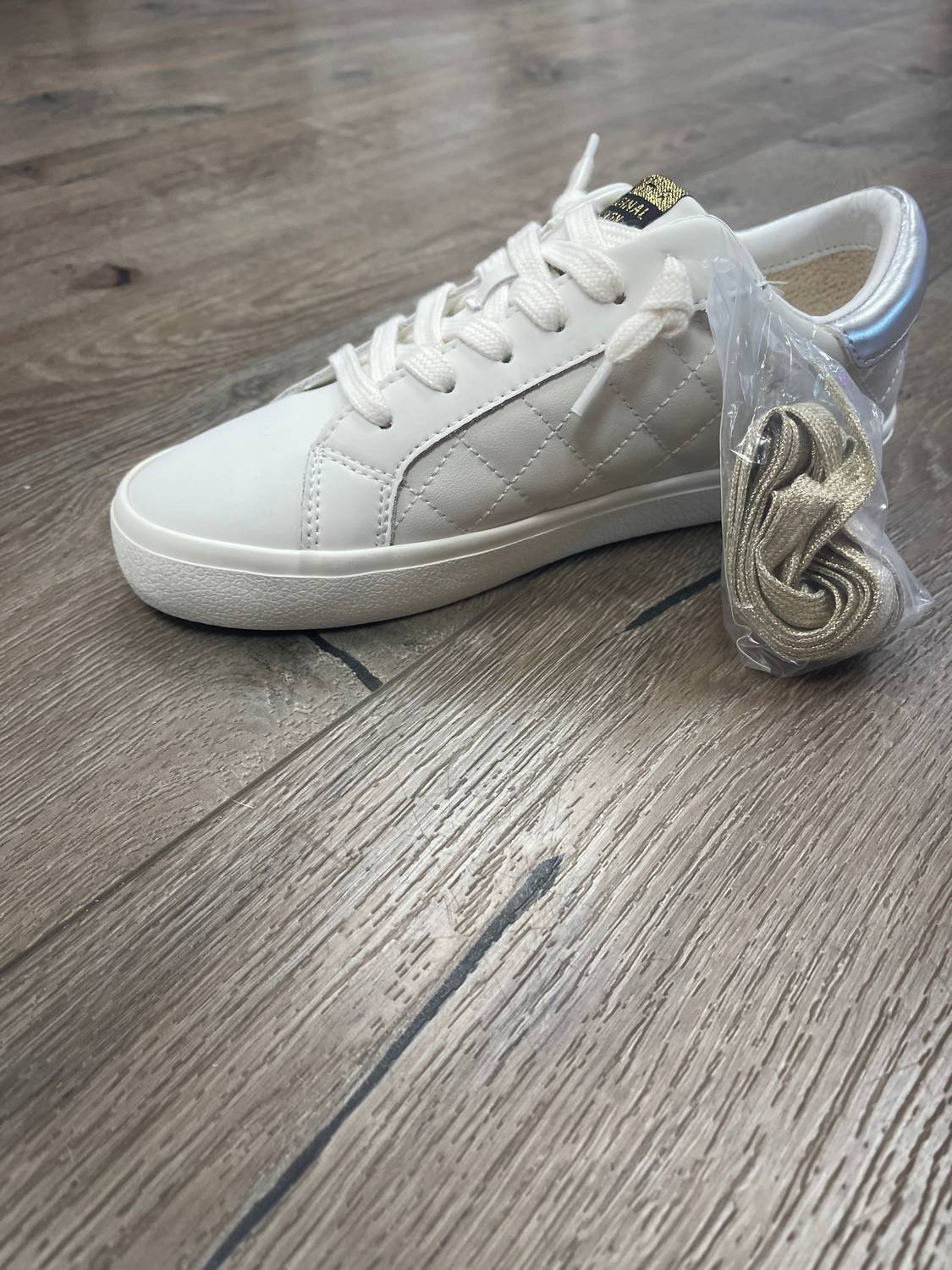 Step up your sneaker collection with the Women's Flair 50 Sneakers by Vintage Havana. These standout kicks in white boast a synthetic upper, adorned with a gold star and quilted sides, perfect for adding a bold accent to your style. Complete with a round toe design and lightly cushioned footbed, they ensure comfort as well as style.