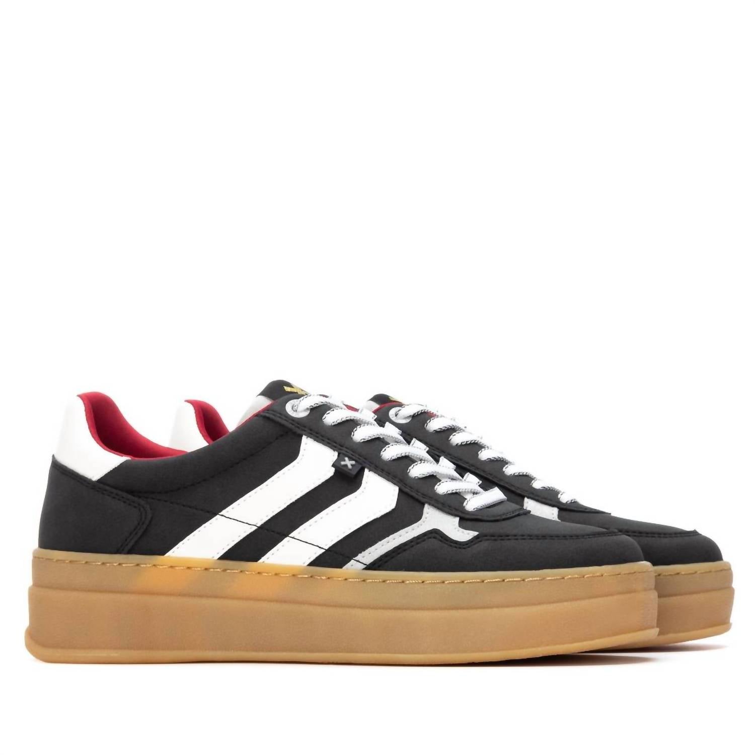 Introducing the Women's 144630 Round Toe Sneakers by Xti, crafted from premium leather for a sleek and stylish look. These black sneakers feature a flat heel design, perfect for fitness and workout sessions, as they blend comfort with contemporary athleisure trends. With a medium shoe width, they ensure a comfortable fit for casual outings or special occasions. Elevate your spring wardrobe with these versatile and head-turning sneakers.