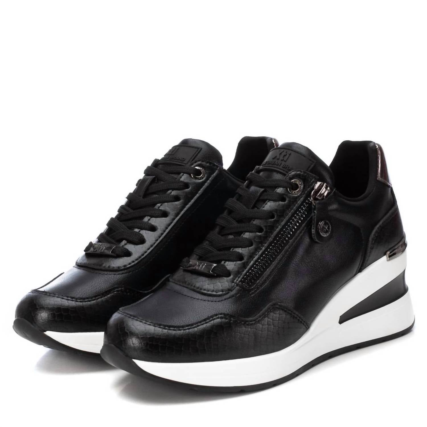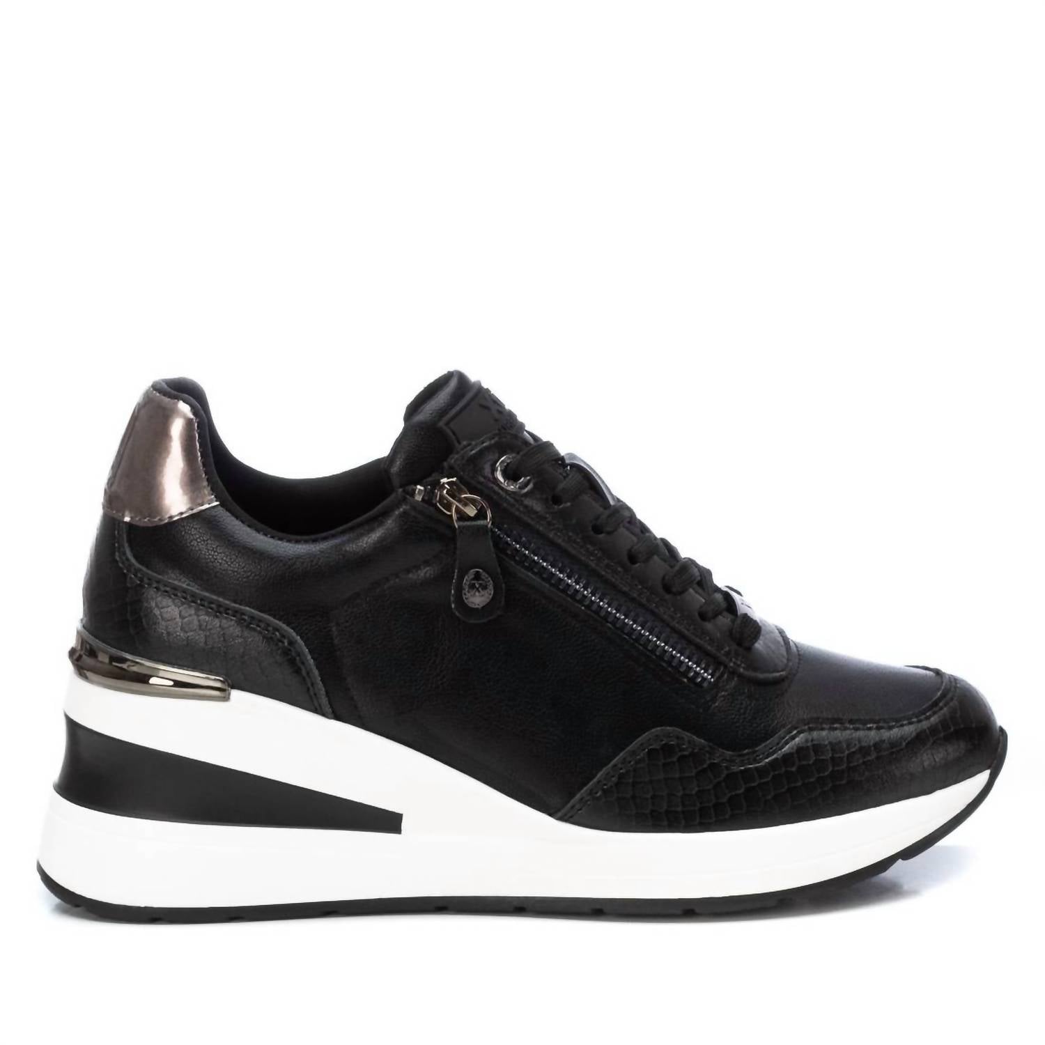 When fashion and function come together seamlessly. Elevate your casual ensemble with the Women's Casual Wedge Sneakers from Xti, featuring a chic faux leather finish. These stylish sneakers boast a 2.36-inch wedge heel for added height, complementing the trendy design. The lacing and side zipper closure ensure a secure fit, while the breathable material and padded insole provide exceptional comfort. Enjoy the lightweight, anti-slip rubber sole for durability and all-day wear.