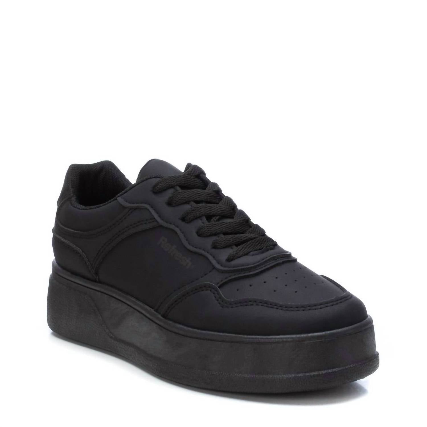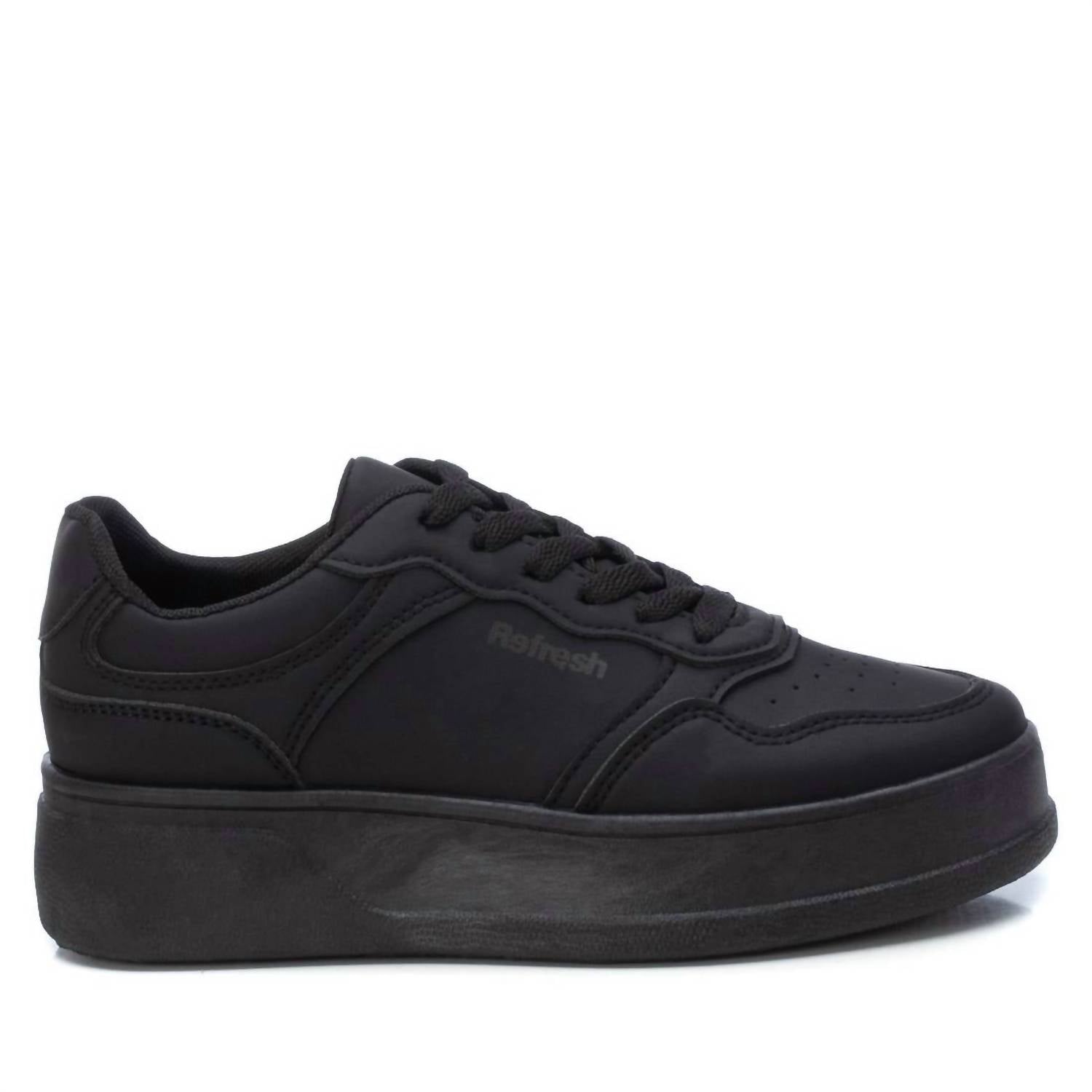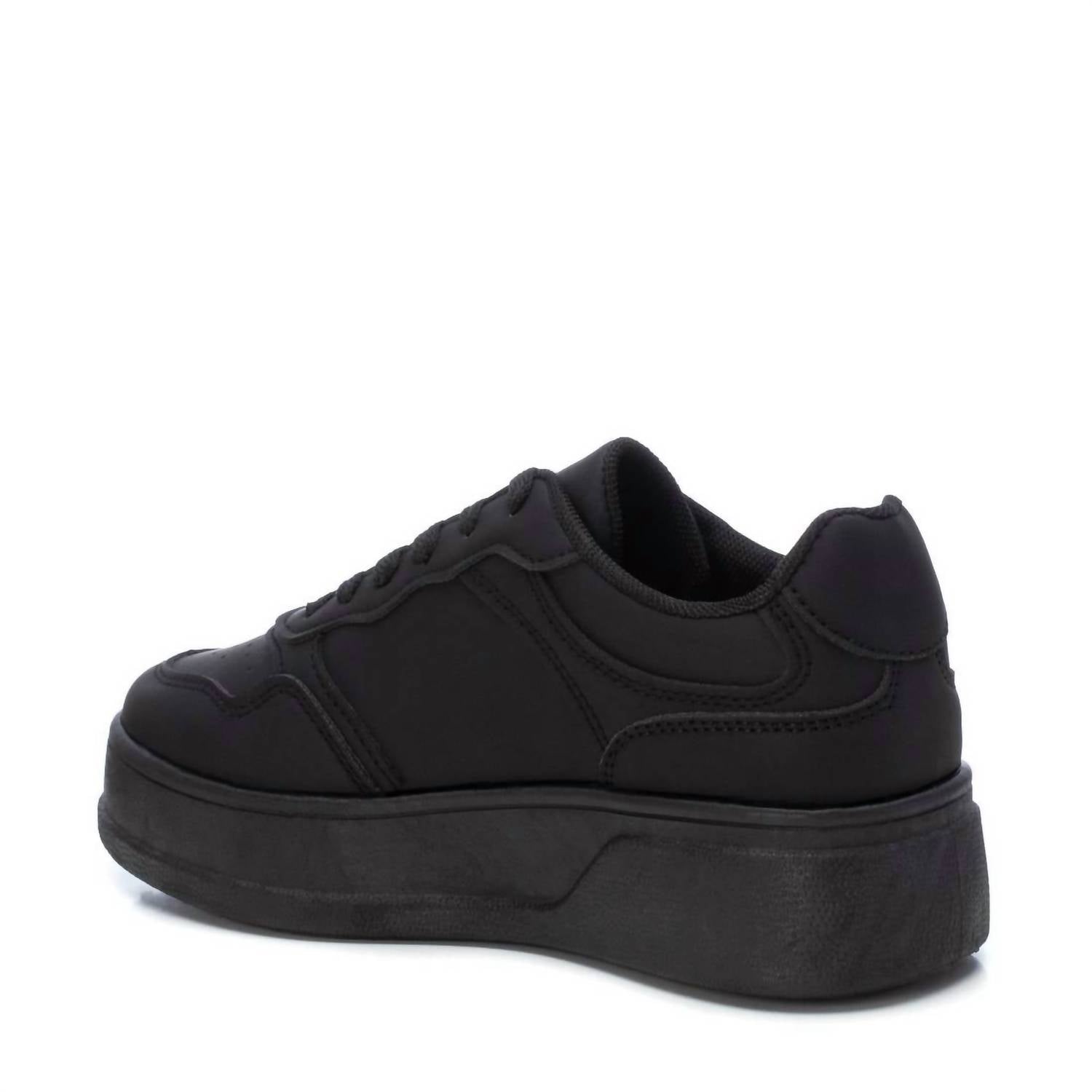 Step into effortless style with the Women's Lace-up Sneakers by Xti. Designed in sleek black, these sneakers feature breathable material and a padded insole, offering premium comfort for your feet. The round toe and flat heel provide a timeless silhouette, with a norm heel height of low (1 1/4"-2") for easy all-day wear. Perfect for travel and celebrating the 90s fashion trend, these sneakers ensure a secure fit with laces and are equipped with a non-slip rubber sole for reliable traction.