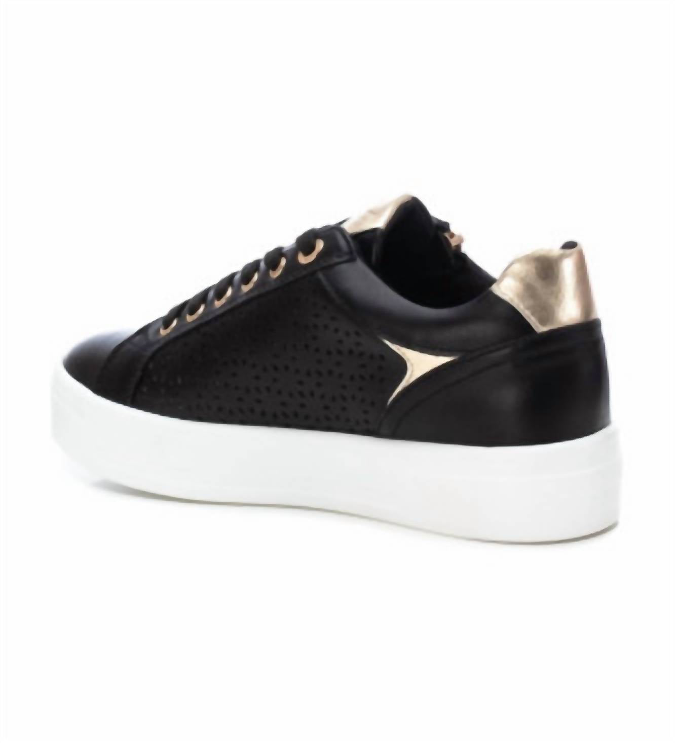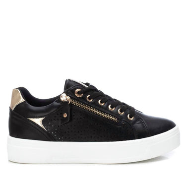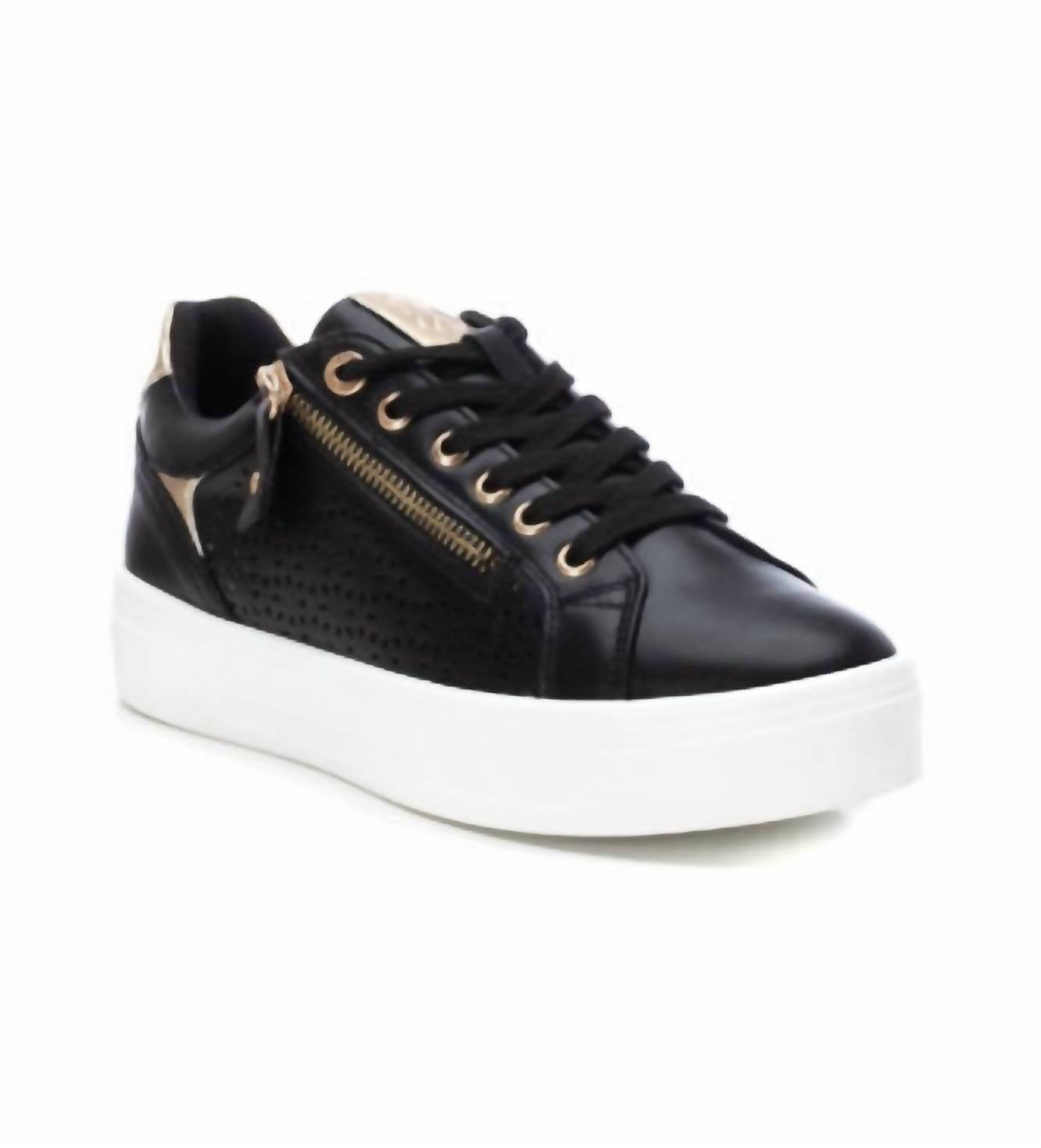This Faux Leather Sneaker features an eye-catching die-cut side detail and a side zipper closure with decorative laces. Crafted from high-quality faux leather, it offers a luxurious look and feel. The non-slip rubber sole ensures stability and comfort. PETA-certified vegan, perfect for daily wear and casual outings.