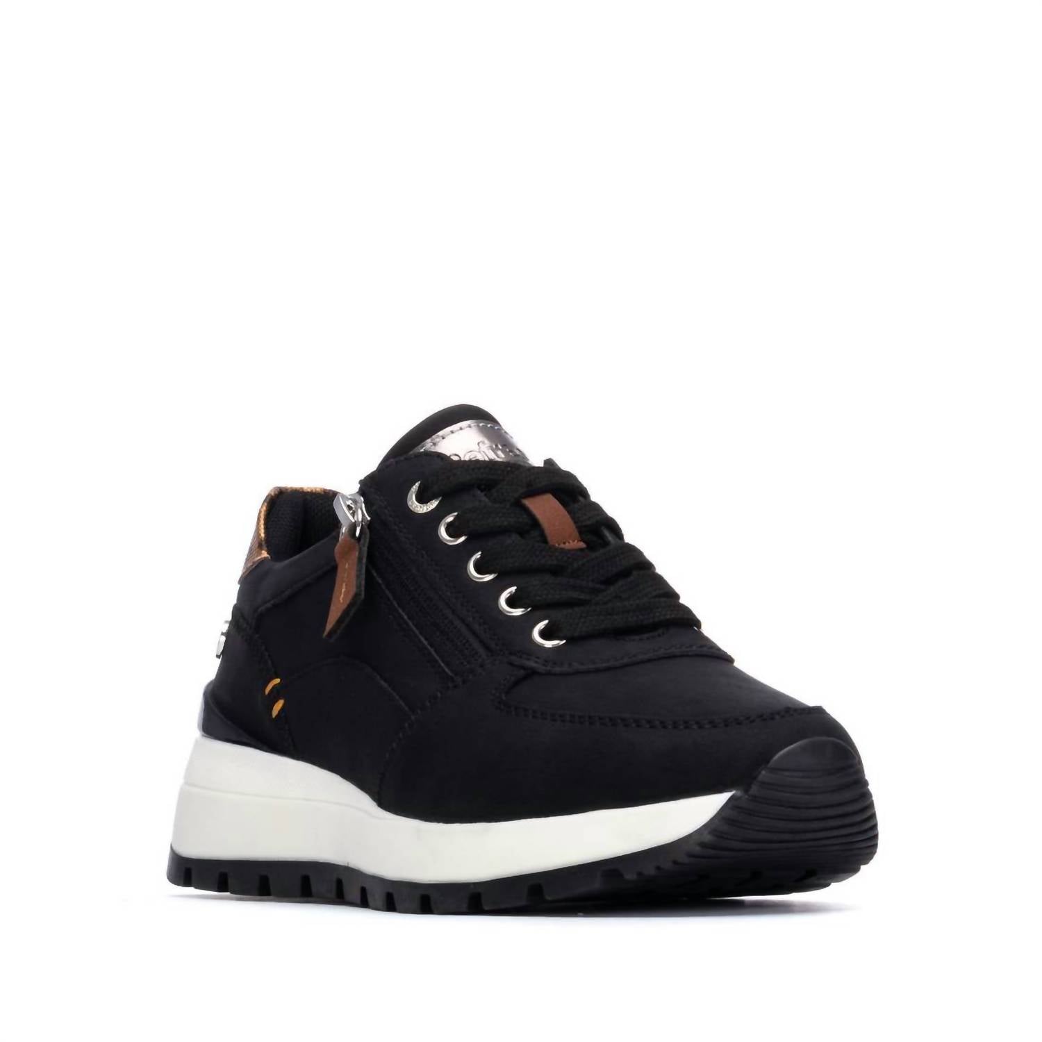 Experience ultimate style and comfort with the Women's Refresh 173243 Sneakers by Xti in timeless black. Crafted from premium leather, these flat sneakers are ideal for summer athleisure, seamlessly taking you from fitness schedules to casual outings. Designed with a round toe shape, they offer a perfect fit for women seeking both fashion and functionality. Elevate your footwear collection with these versatile sneakers, embodying the quality and expert craftsmanship of Xti.