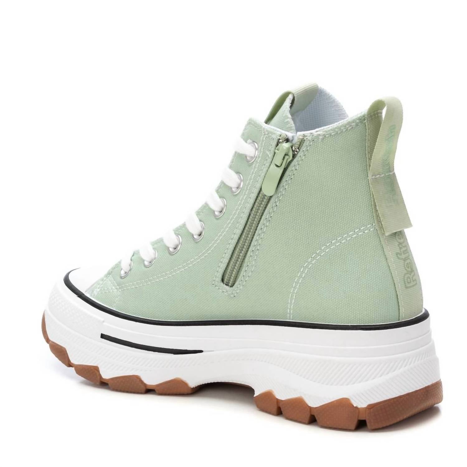 Introducing the Women's Trainer Sneakers by Xti in a refreshing aqua hue, an embodiment of style with eco-conscious craftsmanship. These ankle-length sneaker boots are made of high-quality linen, featuring an internal zip closure and adjustable laces for a customized fit. They boast a removable insole and a thick two-tone rubber sole, ensuring both comfort and durability. Proudly vegan certified by PETA, these sneakers seamlessly combine ethics with fashion, making them an excellent addition to your everyday wardrobe.