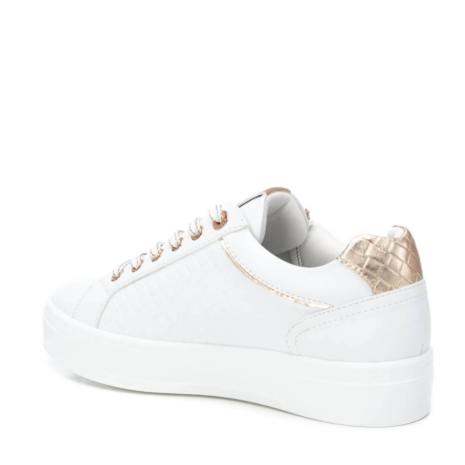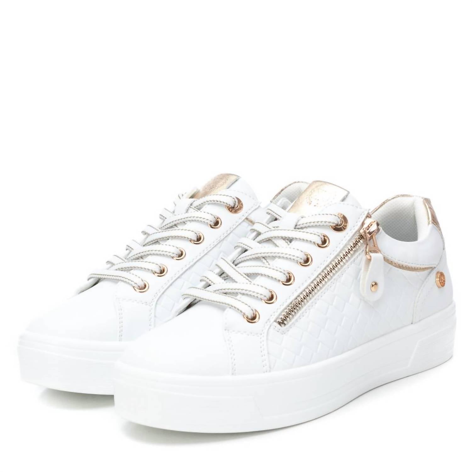 Discover the Women's Trainer Sneakers, the ultimate fusion of fashion and comfort in a chic hue. Crafted from durable faux leather with an engraved side, these sneakers boast a sleek design enhanced by a zip fastening and decorative laces. Enjoy maximum comfort with the removable insole and nice non-slip rubber sole, perfect for all-day wear. Proudly certified vegan by PETA, these sneakers are a stylish choice for conscious consumers.