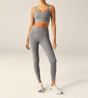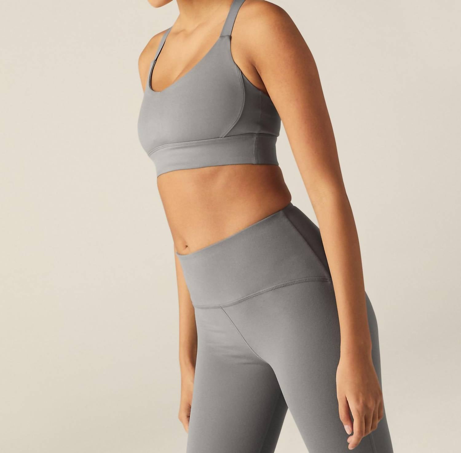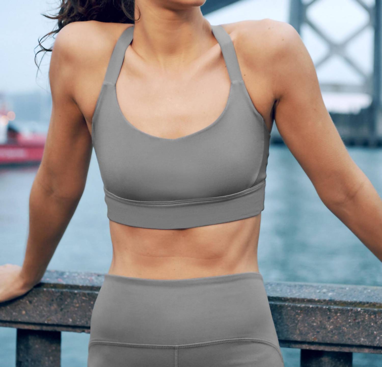 The Powerbeyond Strive Long Line Bra by BEYOND YOGA is designed to enhance and support, featuring adjustable straps and a secure 2" encased elastic hemband. Crafted from our POWERBEYOND™ polyester fabric, it boasts powermesh layers and contoured seams for a flattering silhouette. The solid Iron Gray hue provides a sleek look, and it's self-lined for ultimate comfort. Made in the US, this sports bra offers medium to high support and is easy to care for with machine wash and tumble dry instructions.