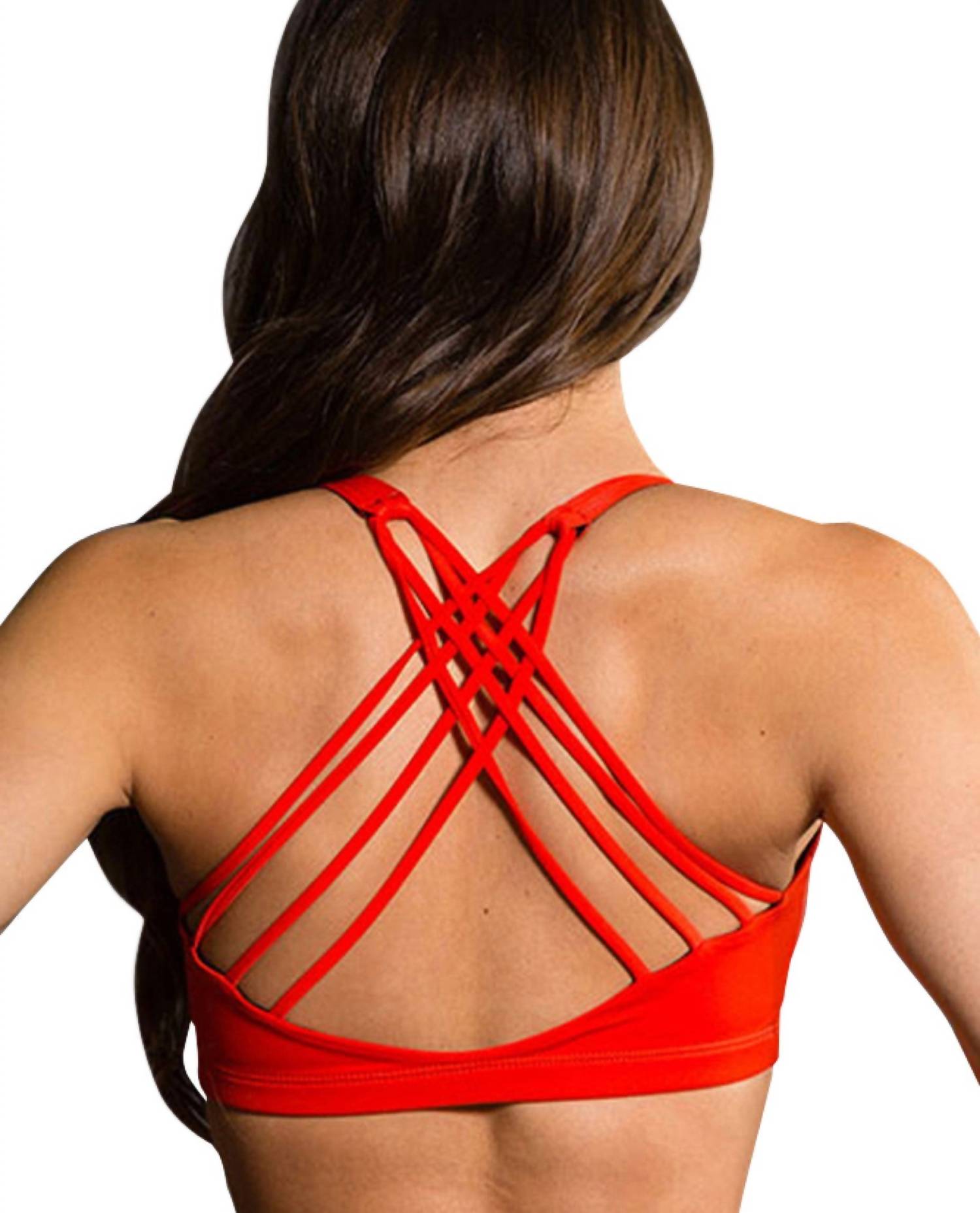 Introducing the Onzie Chic Low Impact Sports Bra in vibrant Coral, a perfect addition to your athleisure collection. This sports bra offers light support and features a scoop neck design with a strappy, crisscross back. Crafted from a blend of 80% Nylon and 20% Spandex, it embodies both comfort and style. Ideal for fitness or workout sessions, it can be conveniently machine washed.