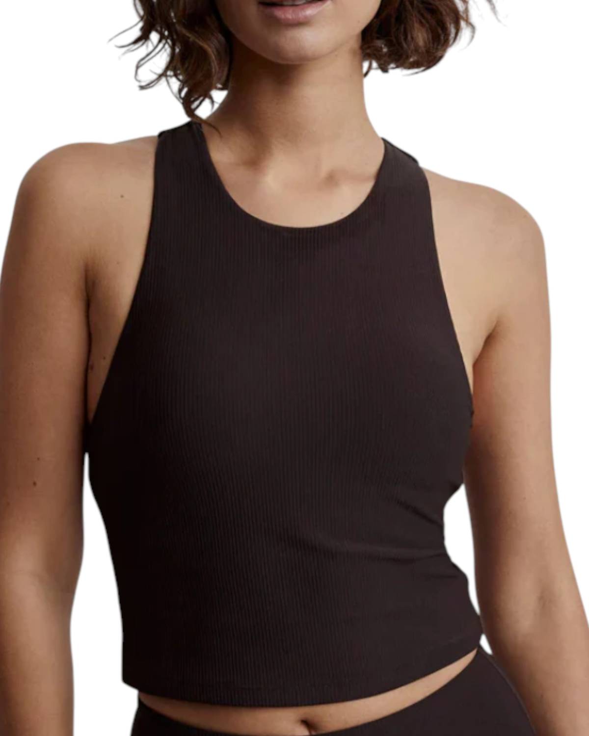 Embrace comfort and style with the Let's Move Rib Kempton Bra by VARLEY, perfect for your active lifestyle. Designed in a rich Chocolate Torte hue, this sports bra is made from high-quality Nylon and features a solid pattern for a sleek look. Its fitted shape, inner shelf, and removable cups provide the support you need for workouts, errands, or relaxation. Ideal for springtime athleisure, it moves seamlessly with you.