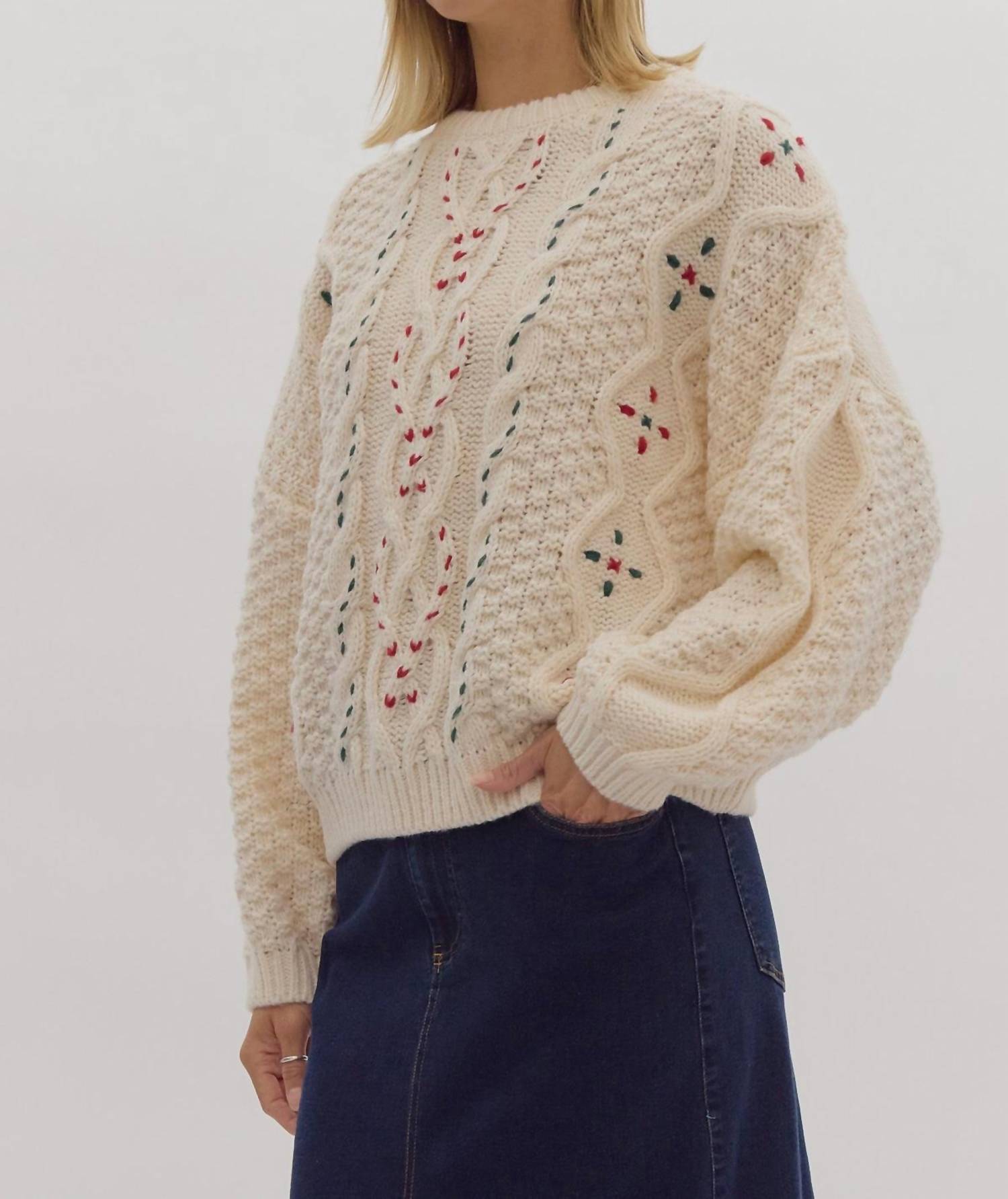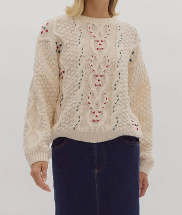 Entro - Cable Knit Round Neck Sweater