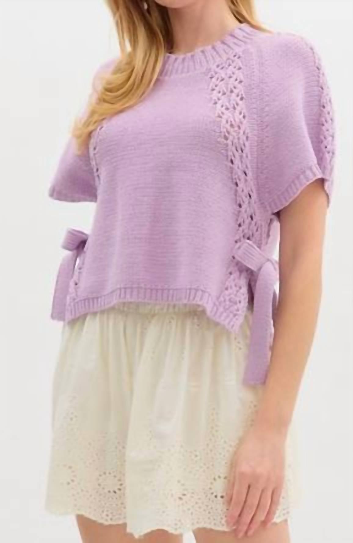 Entro - Knit Sweater Top With Side Tie Over Slit Hem