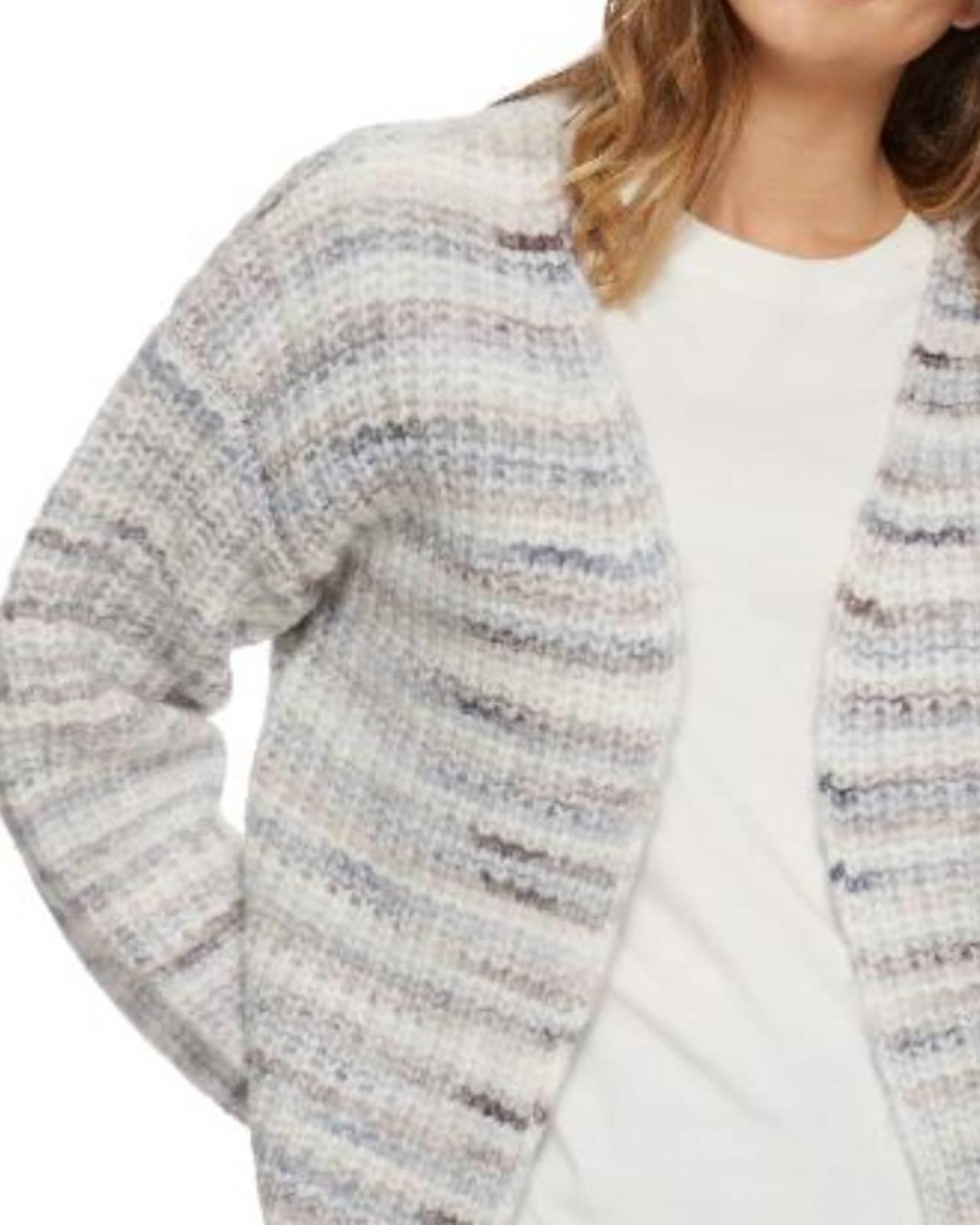 Elevate your wardrobe with the Dorset Balloon Sleeve Cardigan by Flag & Anthem in a charming pale blue multi shade. This cardigan features long balloon sleeves and a comfortable pull-on closure, perfect for a minimalist and fall-ready look. Crafted from 52% recycled polyester, 31% acrylic, 10% nylon, and 7% wool, it offers both warmth and style, enhanced by a chic V-neckline. Care for this cardigan with machine wash cold instructions.