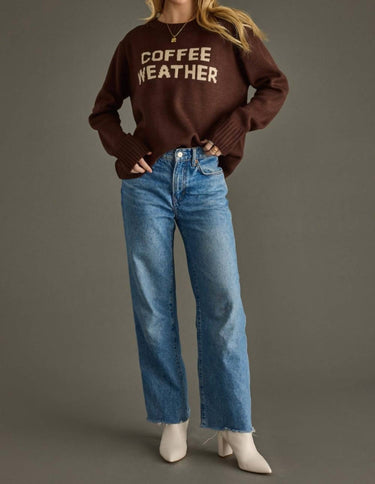 Introducing the Panache Coffee Weather Sweater, a perfect addition to your fall wardrobe. This relaxed fit, long-sleeve sweater in a rich dark brown hue is crafted from 100% acrylic for a cozy feel. Designed with a crewneck, it effortlessly sits below the waist and offers a textured pattern for added style. Closure: Pull on.