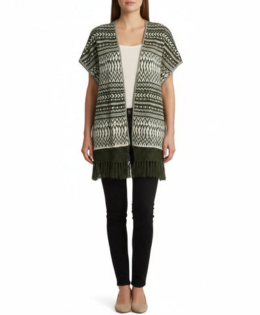 Embrace a bohemian vibe with the Skies Are Blue Tribal Pattern Open Poncho, a stylish piece in green perfect for welcoming spring. This women's poncho features a short sleeve design with a striking gingham pattern and fringe detailing, exuding laid-back elegance. Its open-front style pairs effortlessly with various outfits, making it a must-have for vacation and Easter gatherings. Originating from the boho chic trend, this piece brings an air of casual sophistication to any wardrobe.