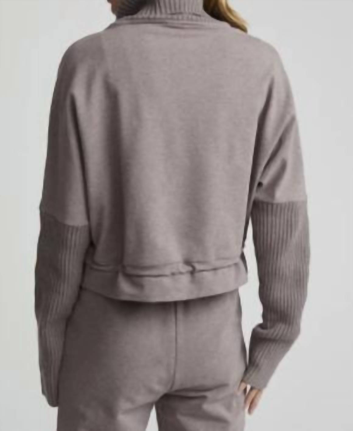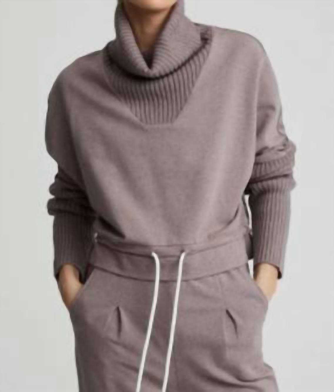 Introducing the VARLEY Britannia Roll Neck Sweater in a sleek Pine Bark hue, an ideal choice for minimalist styling this Spring. This long-sleeve sweater features a chunky, oversized turtleneck and a boxy, slightly cropped silhouette, offering both comfort and style. With a pull-on closure and adjustable drawcord at the hem, it's perfect for versatility whether you're at a Thanksgiving dinner or a casual dinner party. Made without pockets, it's designed to pair seamlessly with matching Keswick pants.