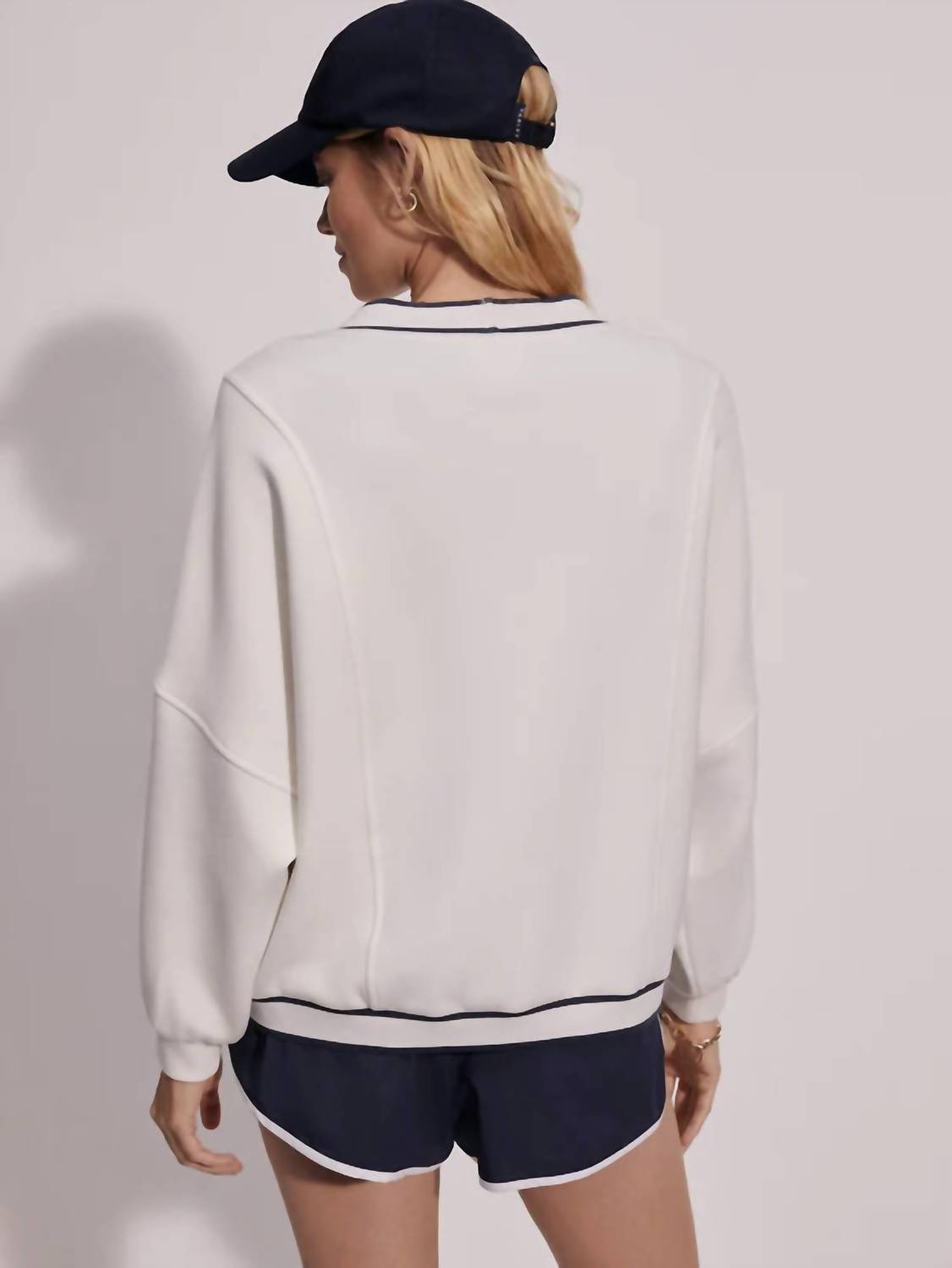 The Decker Off Court Cardigan by Varley is a chic addition to your wardrobe, echoing classic country club style. Crafted from a viscose blend, this white, solid-patterned cardigan features long dolman sleeves with exaggerated dropped shoulders and a V-neckline. It boasts a button closure and practical hand pockets, all designed with a boxy, oversized fit that measures 23.6" in front length for a size S. Ideal for vacation and activewear, it is machine washable, making it a minimalist and functional choice for spring or Easter celebrations.