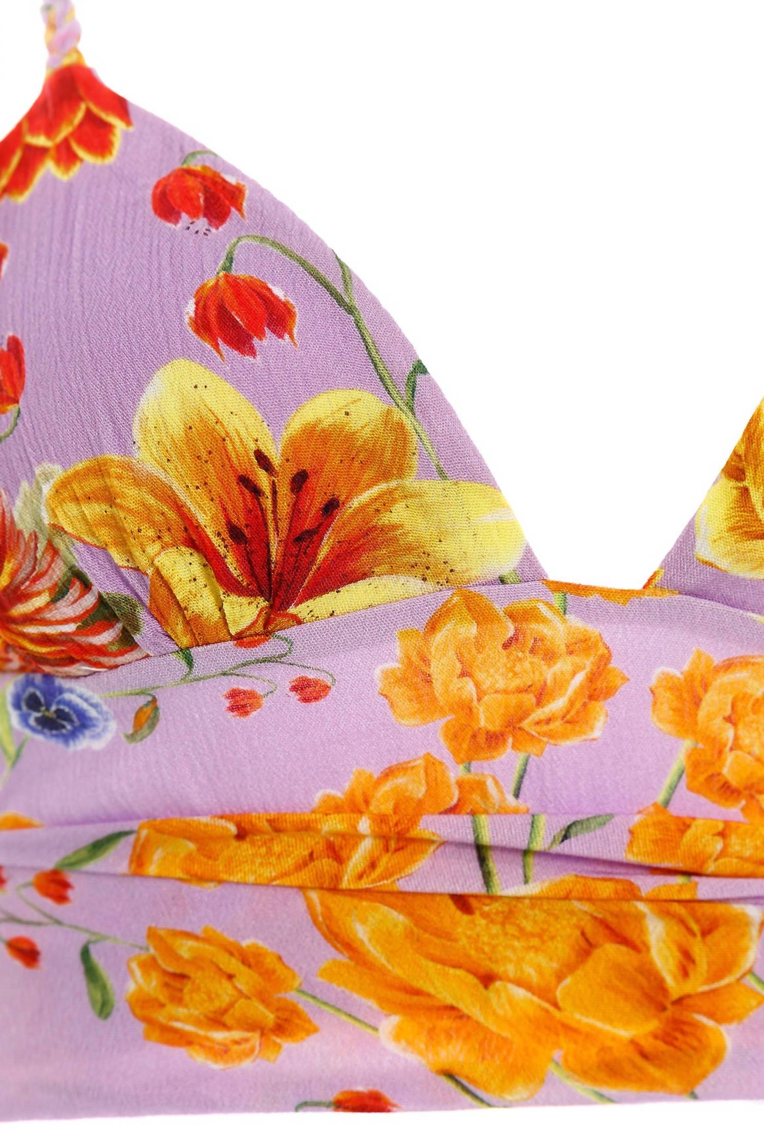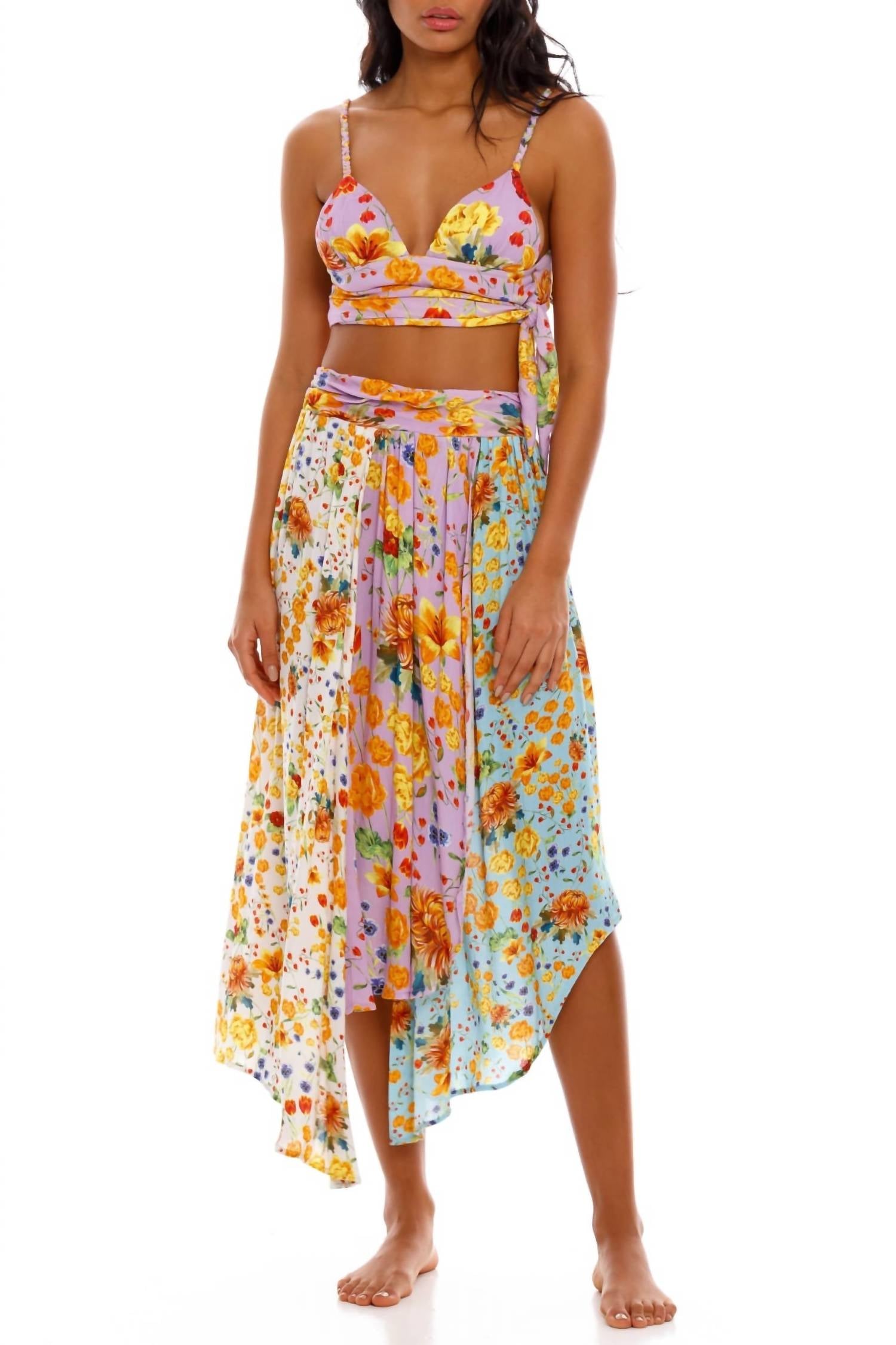 Embrace beachside elegance with the Noor Tie Waist Crop Top by Agua Bendita. This sleeveless top is crafted from durable nylon, featuring a retro floral pattern that captures the brand's boho chic aesthetic. Its pull-on closure and sweetheart neckline offer ease and comfort, making it a versatile piece for any summer getaway. Care for this stylish staple by hand washing and line drying to maintain its vibrant appeal.