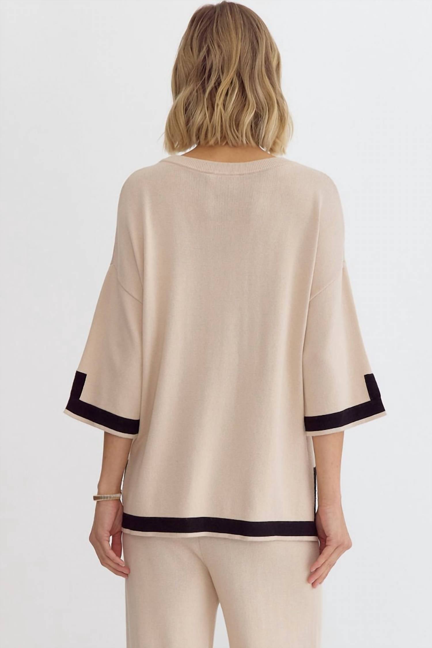 A long sleeve top you can wear with denim, skirts, well... just about anything! This women's top showcases three-quarter sleeves and a comfortable round neckline. Made from 100% viscose, it combines a textured contrast knit design with lightweight, non-sheer fabric for a relaxed fit. The pull-on style features side slits and requires hand washing with line drying to maintain its shape.