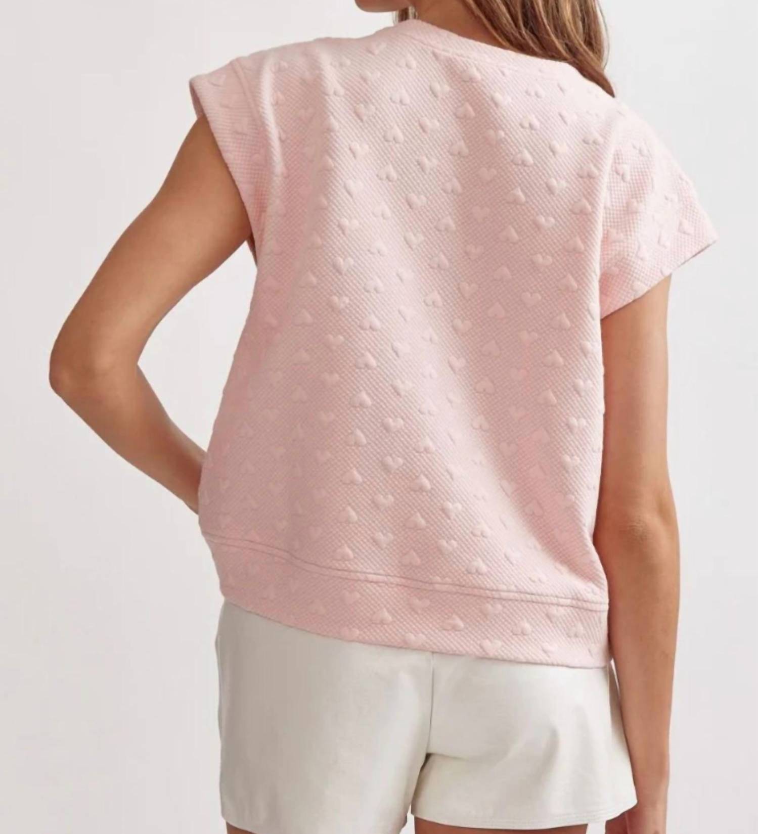 This classic, short sleeve tee will be your go-to staple this season and beyond. Indulge in the Entro My Love Cap Sleeve Top, a charming blend of romance and style in a delightful pink hue. Featuring short sleeves and crafted from 100% cotton, this top boasts heart embossing for an added whimsical touch. Originating from abroad, the pull-on style makes it easy to wear, and it's unlined for a breathable fit. Care for this oversized essential with a hand wash in cold water, line dry, and iron on low heat to maintain its sweet sophistication.