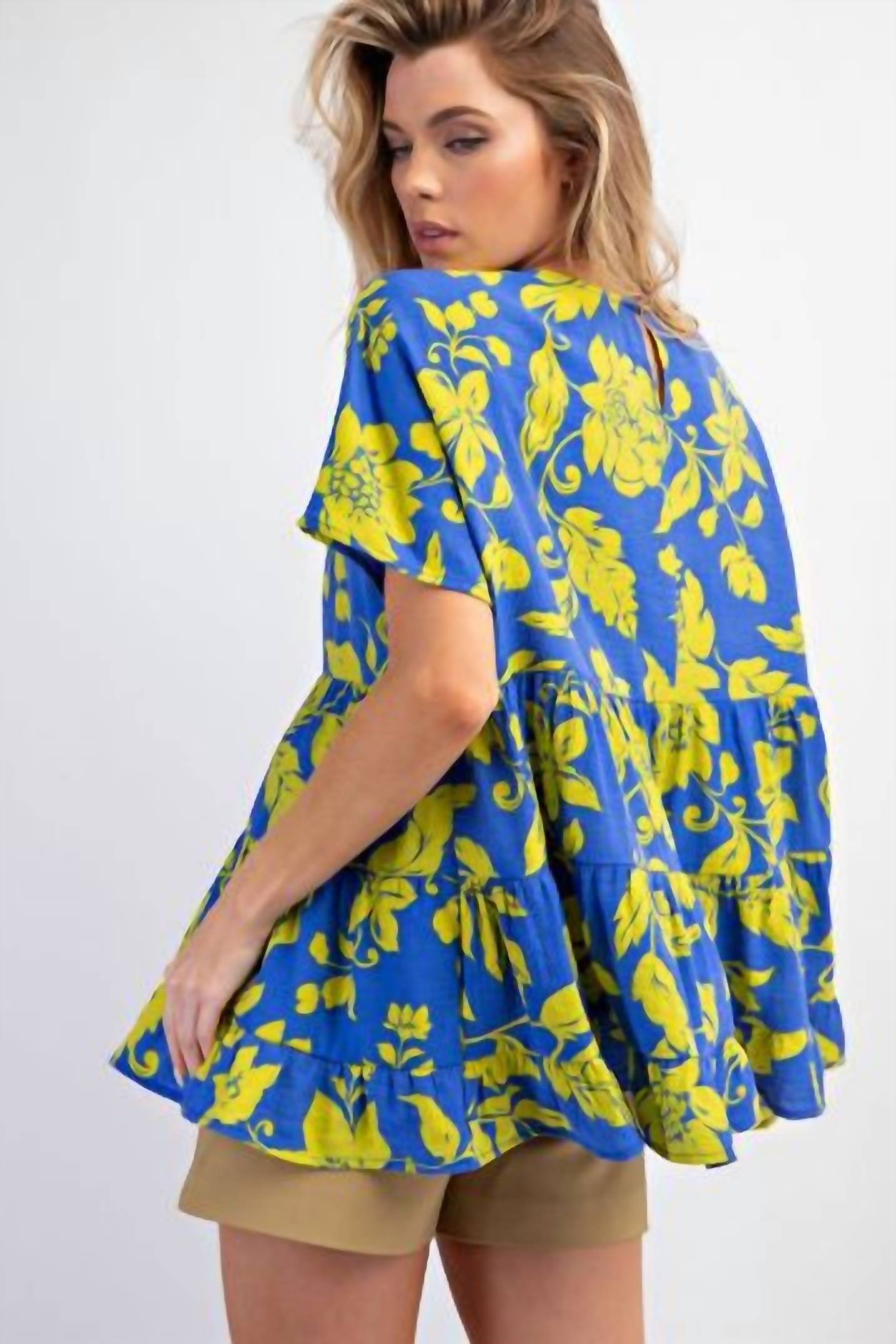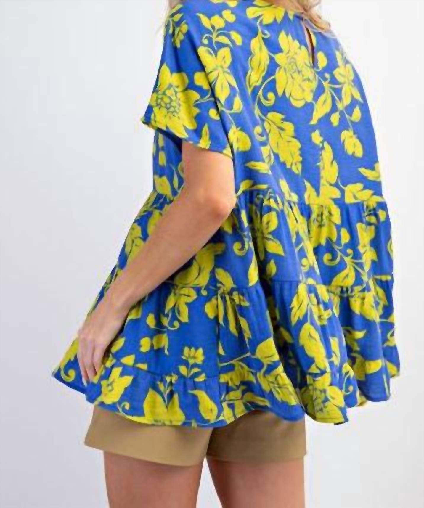 Embrace boho chic style with the Peri Top by Entro, a versatile scoopneck blouse in a stunning blue print. This women's top features short sleeves and a button closure for an easy, comfortable fit. Perfect for spring vacations and stylish Mother's Day outings. Ideal for pairing with your favorite bottoms for effortless, everyday elegance.