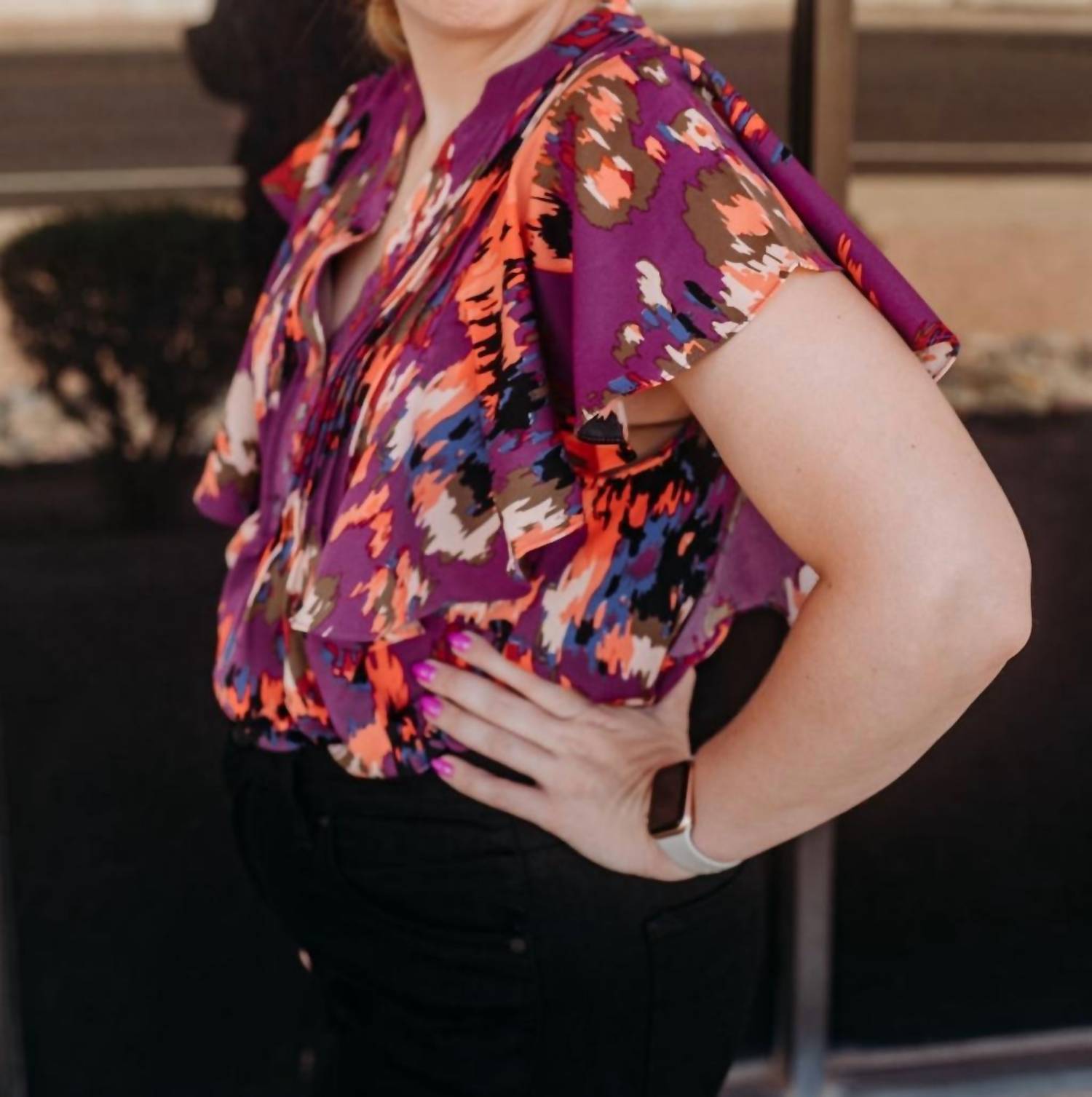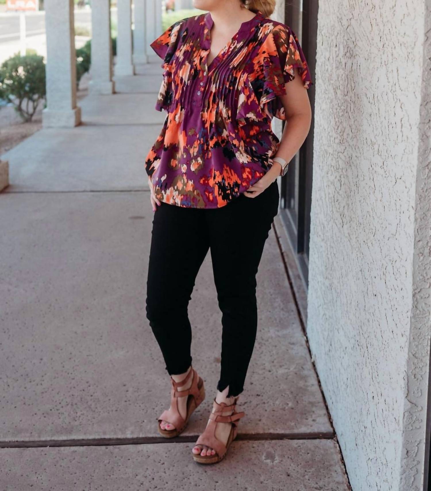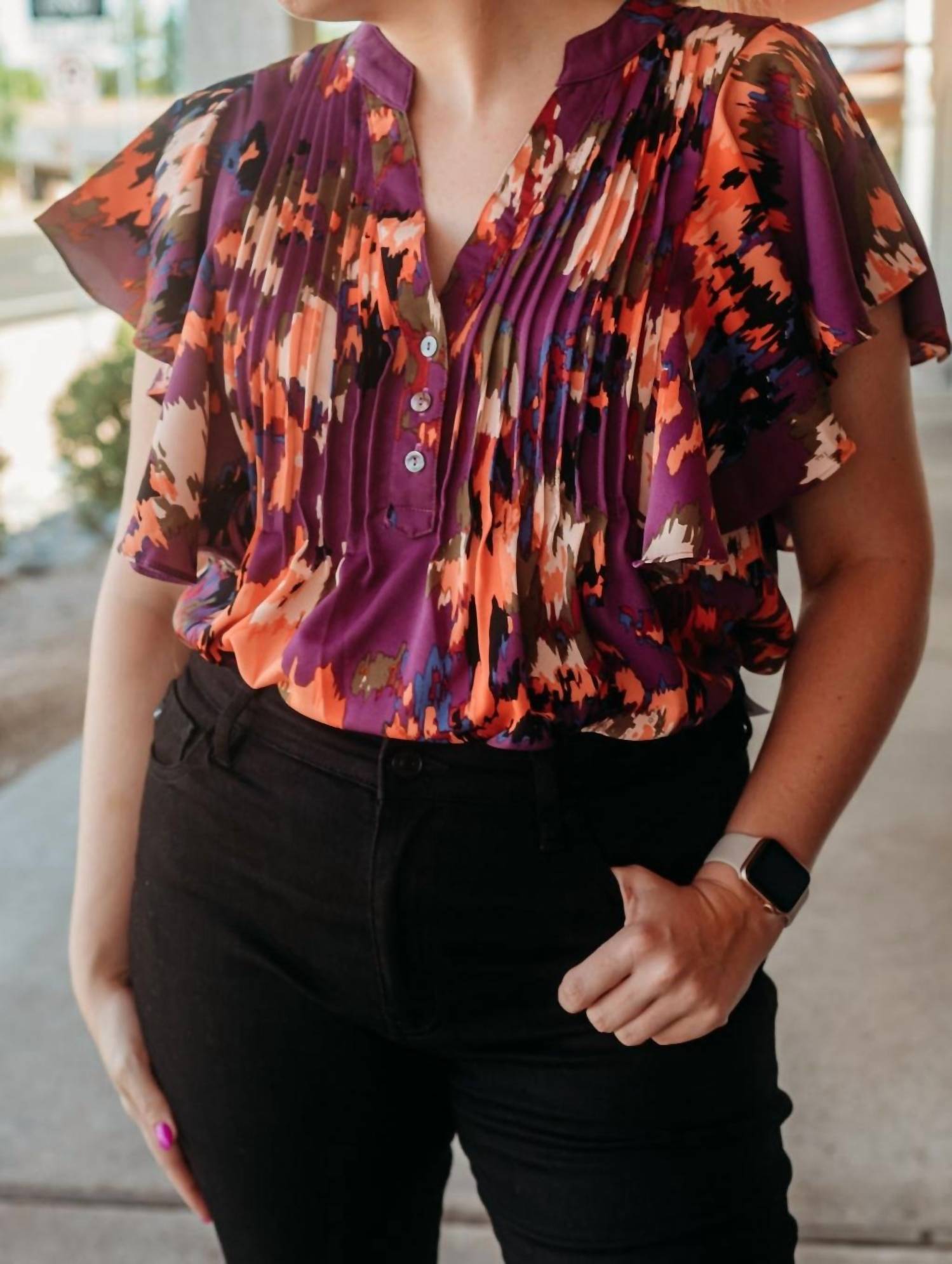 Entro - Plum Ruffle Sleeve Blouse