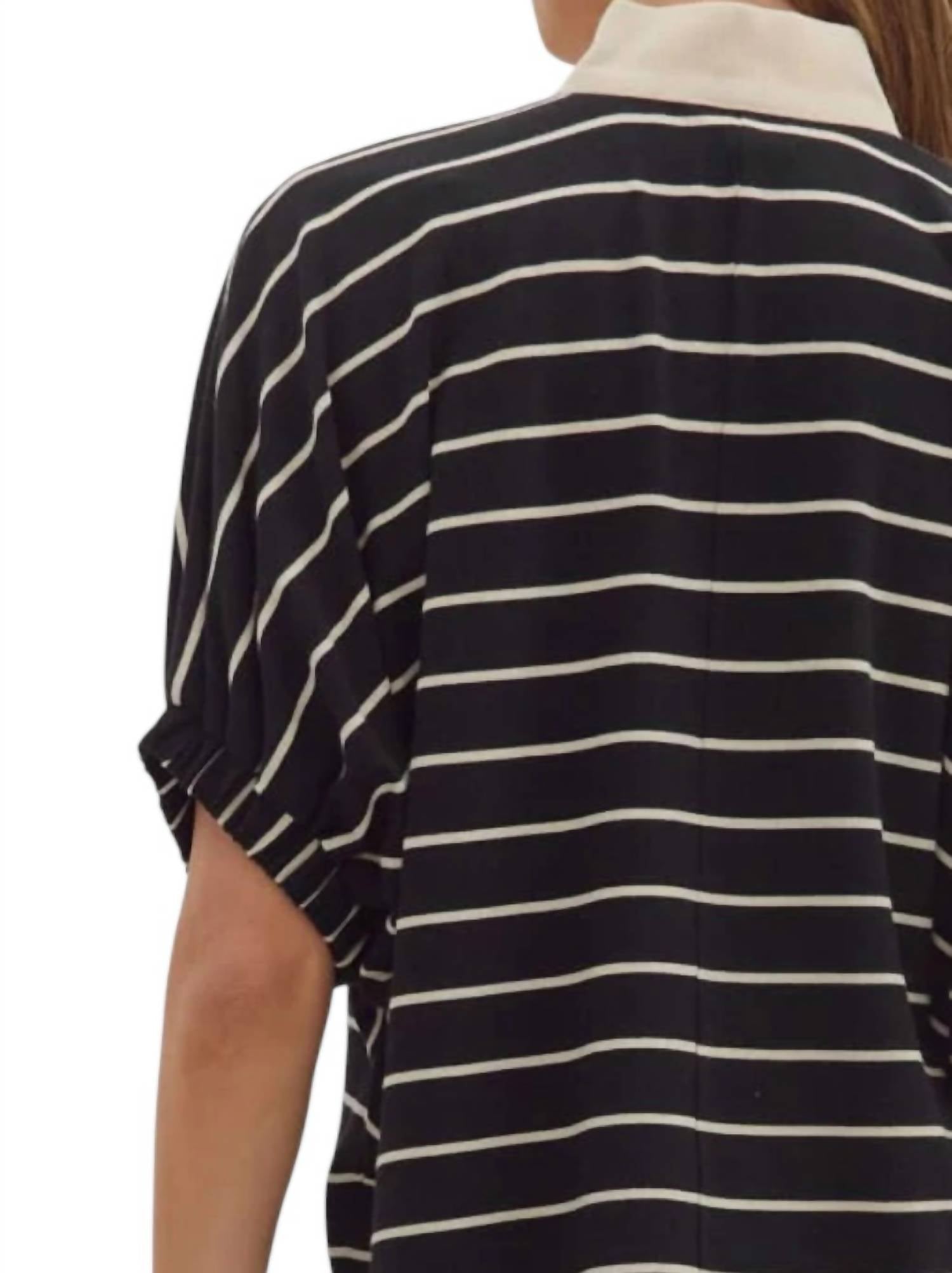 Discover the Stripe Dolman Sleeve Top by Entro, a chic ivory blouse perfect for vacations and Valentine's Day outings. This women’s summer top features short dolman sleeves with elasticated openings and a stylish striped pattern, highlighted by a contrasting trim along the split V-neckline. Crafted from a comfortable cotton blend, it combines 65% polyester, 30% cotton, and 5% spandex, and ensures ease of wear with a pull-on style. Care for it by hand washing, followed by a line dry for optimal longevity.