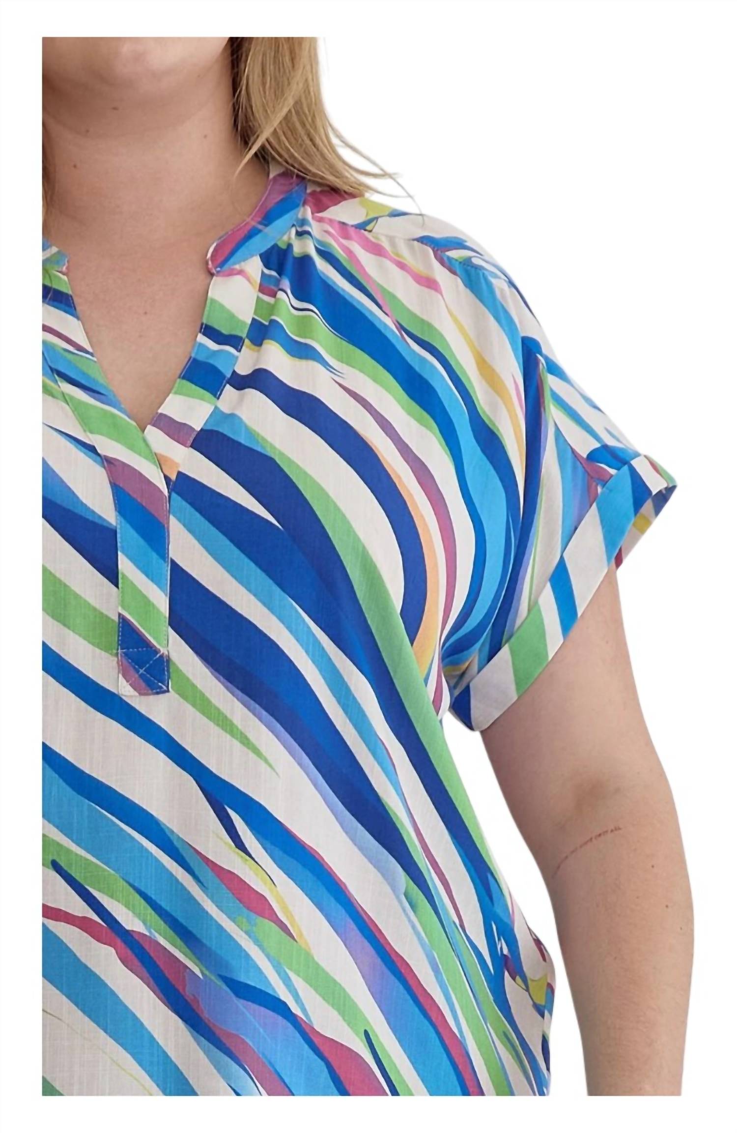 V Neckline. Gathered Details At Shoulders. Back Placket. Tunic Length. Loose Fitting. Non Sheer. Lightweight. Woven. True To Size.100% Polyester.