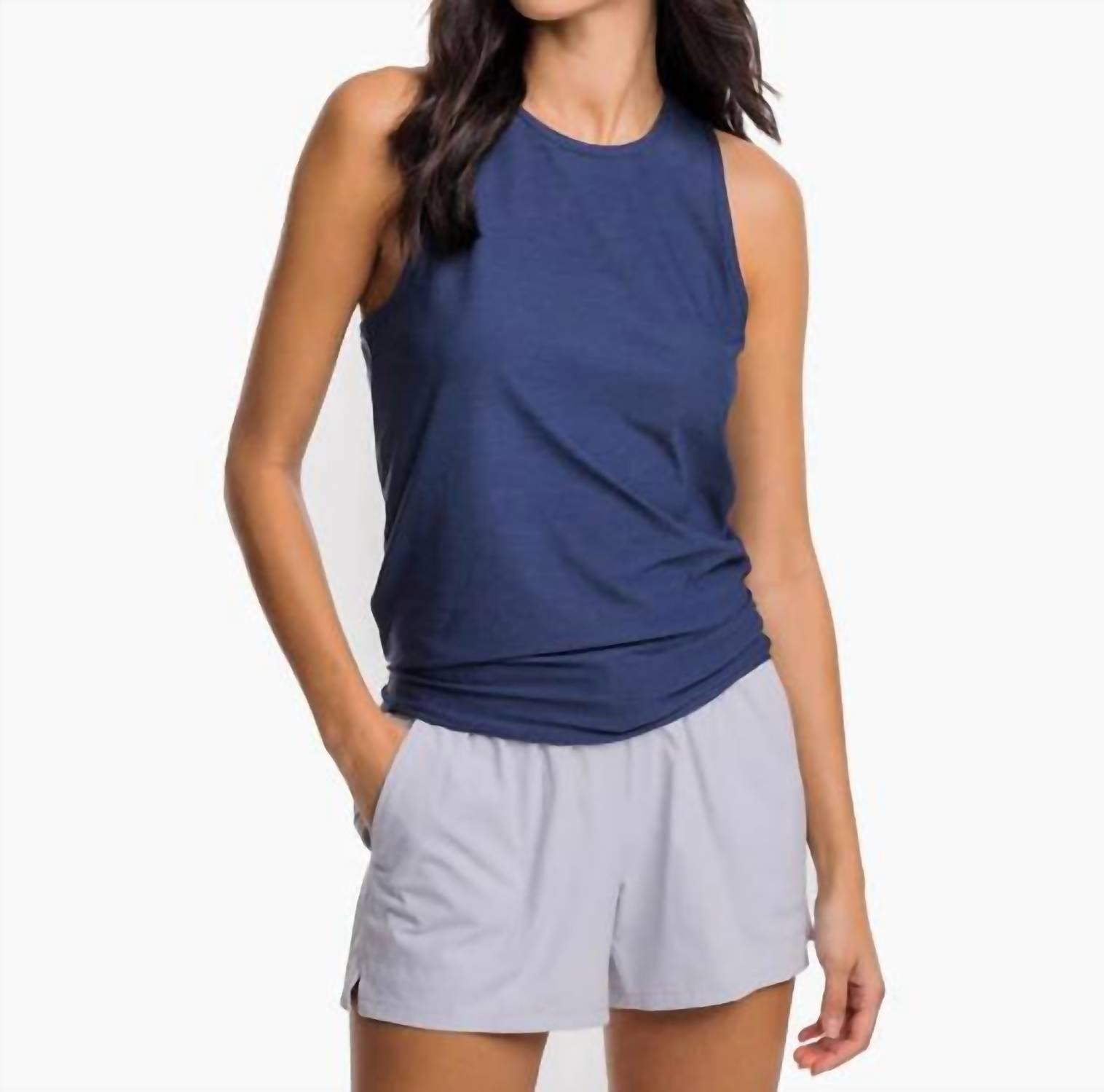 Introducing the Southern Tide Cora Brrr-iliant Tie Back Tank in Nautical Navy, a sporty and stylish choice for summer. This sleeveless tank is crafted from a unique blend of 46% brrr Polyester, 46% Polyester, and 8% Spandex, offering quick-dry and stretch capabilities with integrated UV protection. The eye-catching tie closure back and advanced brrr cooling technology ensure you stay comfortable and cool. Care is simple with machine wash and tumble dry instructions, making it a practical addition to your activewear collection.